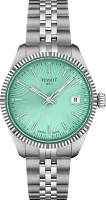 Tissot Ballade 34mm, артикул T156.210.11.091.00 — это оригинальные часы, созданные в лучших традициях часового искусства. Эти швейцарские часы оснащены высокоточным кварцевым механизмом, калибр 10 1/2''', диаметр которого составляет 23.3 мм, а также индикатором исчерпания заряда батареи (EOL), которая имеет тип Renata 371. Круглый корпус часов выполнен из высококачественной нержавеющей стали 316L, имеет диаметр 34 мм и толщину 8.25 мм. Изысканная окантовка безеля является утонченным декоративным элементом, отражающим традиционное мастерство. Светло-зеленый циферблат украшен традиционным узором «гильоше» с лучами «солнечный луч», что великолепно отражает свет, придавая глубину и элегантность, а метки-индексы и люминесцентное покрытие Super-LumiNova на стрелках обеспечивают отличную читаемость времени. Циферблат защищен устойчивым к появлению царапин сапфировым стеклом с антибликовым покрытием. Часы весят 85 г и поставляются на браслете из нержавеющей стали серого цвета с застежкой-бабочкой с кнопками, который оснащен системой быстрой замены, обеспечивая максимальную универсальность и позволяя легко менять образ. Водонепроницаемость этой модели составляет 100 метров (10 АТМ/bar): они подходят для плавания и погружения на глубину 5–7 м (выдвигать заводную головку и нажимать кнопки, находясь в воде, нельзя).