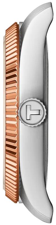 Представляем вашему вниманию оригинальные часы Tissot Ballade 34mm с артикулом T156.210.22.041.00 — изысканное творение, призванное подчеркнуть ваш стиль в самые особенные моменты, объединяющее классику и современность. Эти женские часы, произведенные в Швейцарии, работают от высокоточного швейцарского кварцевого механизма с функцией EOL (индикатор окончания срока службы элемента питания), калибр 10 1/2''' и диаметром 23.3 мм, питающегося от батареи типа Renata 371. Круглый корпус часов и браслет изготовлены из нержавеющей стали 316L, при этом корпус имеет PVD-покрытие цвета розового золота, а браслет выполнен в двух тонах: сером и розовом золоте 5N. Рифленый безель с покрытием PVD цвета розового золота служит утонченным декоративным элементом, отражающим традиционное часовое мастерство, и придает модели особый шарм. Синий циферблат с лучевидным гильоше прекрасно отражает свет, добавляя глубины и элегантности, а индексы и стрелки покрыты люминесцентным составом Super-LumiNova. Защиту циферблата обеспечивает устойчивое к царапинам сапфировое стекло с антибликовым покрытием. Модель обладает водонепроницаемостью 100 метров (10 АТМ/bar): подходят для плавания и погружения на глубину 5–7 м (выдвигать заводную головку и нажимать кнопки, находясь в воде, нельзя). Удобная застежка-бабочка с кнопками и система быстрой замены браслета обеспечивают максимальную универсальность, позволяя легко менять образ. Толщина корпуса составляет 8.25 мм, длина и ширина — 34 мм, а расстояние между ушками — 16 мм. Вес этих великолепных швейцарских часов составляет 85 г.