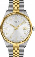 Прикоснитесь к миру высокого часового искусства с мужскими часами Tissot Ballade 40mm — идеальным аксессуаром, способным подчеркнуть ваш стиль в самые особенные моменты. Эти оригинальные часы сочетают в себе классическую элегантность и современные технологии. Корпус часов круглой формы изготовлен из нержавеющей стали 316L с PVD-покрытием цвета желтого золота, а его размеры составляют: длина 40 мм, ширина 40 мм и толщина 8,25 мм. Изысканный внешний вид дополняет рифленый безель, который является данью традиционному часовому мастерству. На серебристом циферблате, украшенном традиционным гильоше в виде солнечных лучей, расположены индексы и стрелки с люминесцентным покрытием Super-LumiNova. Защищает циферблат устойчивое к царапинам сапфировое стекло с антибликовым покрытием. Внутри находится надежный швейцарский кварцевый механизм калибра 11 1/2''' диаметром 25,6 мм с функцией EOL (индикатор окончания срока службы батареи), работающий от батарейки типа Renata 371. Вес изделия — 120 г. Благодаря быстросъемному сменному браслету из нержавеющей стали серого цвета с элементами PVD-покрытия цвета желтого золота 1N14 часы обладают максимальной универсальностью, позволяя легко менять образ. Браслет оснащен застежкой-бабочкой с кнопками. Водозащита 100 метров (10 АТМ/bar): подходят для плавания и погружения на глубину 5–7 м (выдвигать заводную головку и нажимать кнопки, находясь в воде, нельзя).