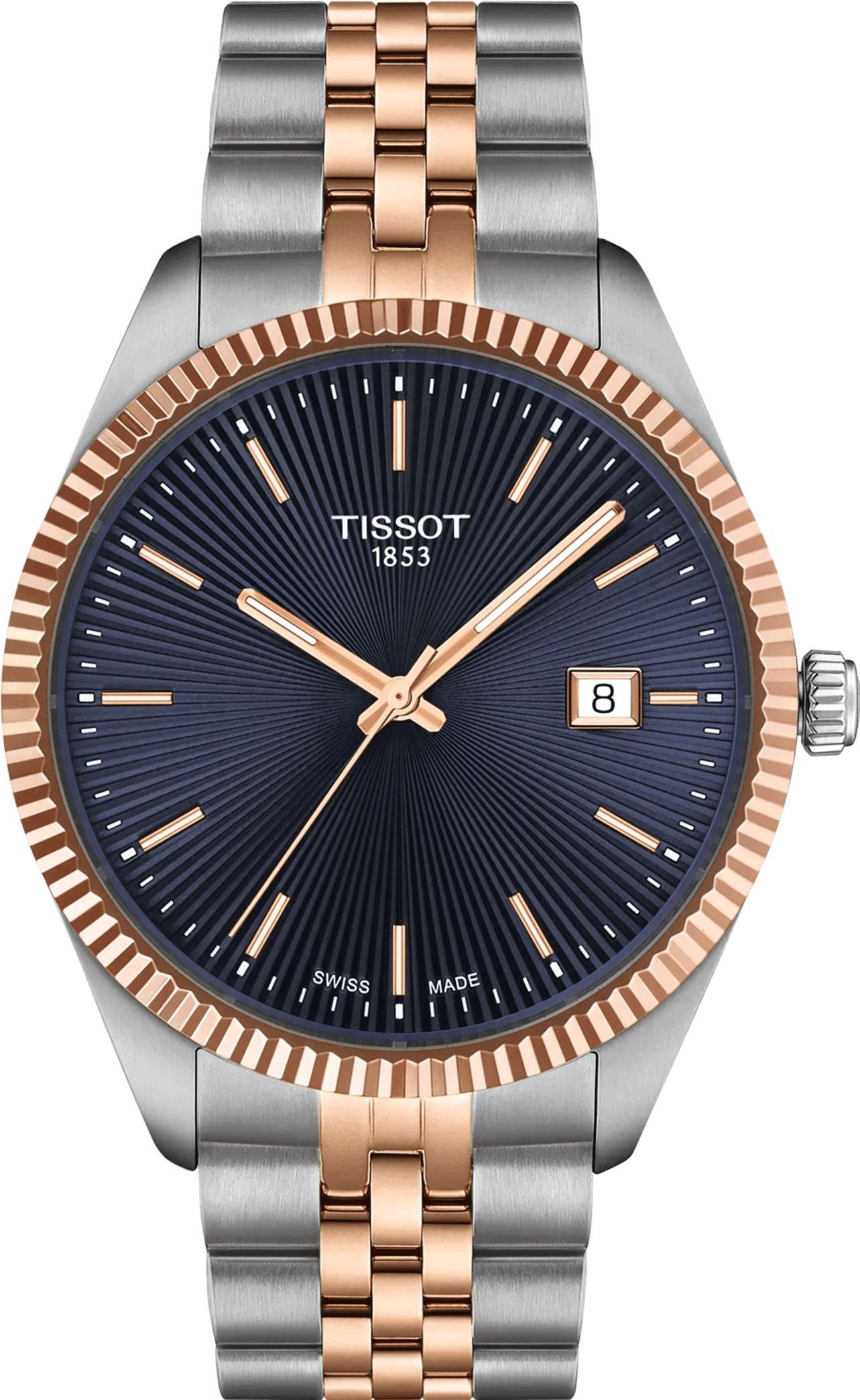 В поисках идеального аксессуара для особенных моментов обратите внимание на Tissot Ballade 40mm — оригинальные часы, сочетающие классическую элегантность и современные технологии. Эти мужские швейцарские часы обладают корпусом из нержавеющей стали 316L с PVD-покрытием «розовое золото». Диаметр корпуса составляет 40 мм, толщина — 8,25 мм, а вес — 120 г. Модель оснащена надежным швейцарским кварцевым механизмом с функцией EOL (индикатор окончания срока службы батареи), калибр — 11 1/2''', диаметр калибра — 25,6 мм. Синий циферблат украшен традиционным гильошированием с узором «солнечные лучи», которое красиво отражает свет, а на стрелках нанесено люминесцентное покрытие Super-LumiNova. Изысканности часам придает рифленый безель, отражающий традиционное часовое мастерство. Стекло — устойчивый к появлению царапин сапфировый кристалл с антибликовым покрытием, обеспечивающий отличную читаемость. Водостойкость составляет 100 метров (10 АТМ/bar): подходят для плавания и погружения на глубину 5–7 м (выдвигать заводную головку и нажимать кнопки, находясь в воде, нельзя). Часы поставляются со стальным браслетом с PVD-покрытием серого цвета и «розовое золото 5N» с застежкой «бабочка» с кнопками, а система быстрой замены браслета предлагает максимальную универсальность, позволяя легко менять образ.