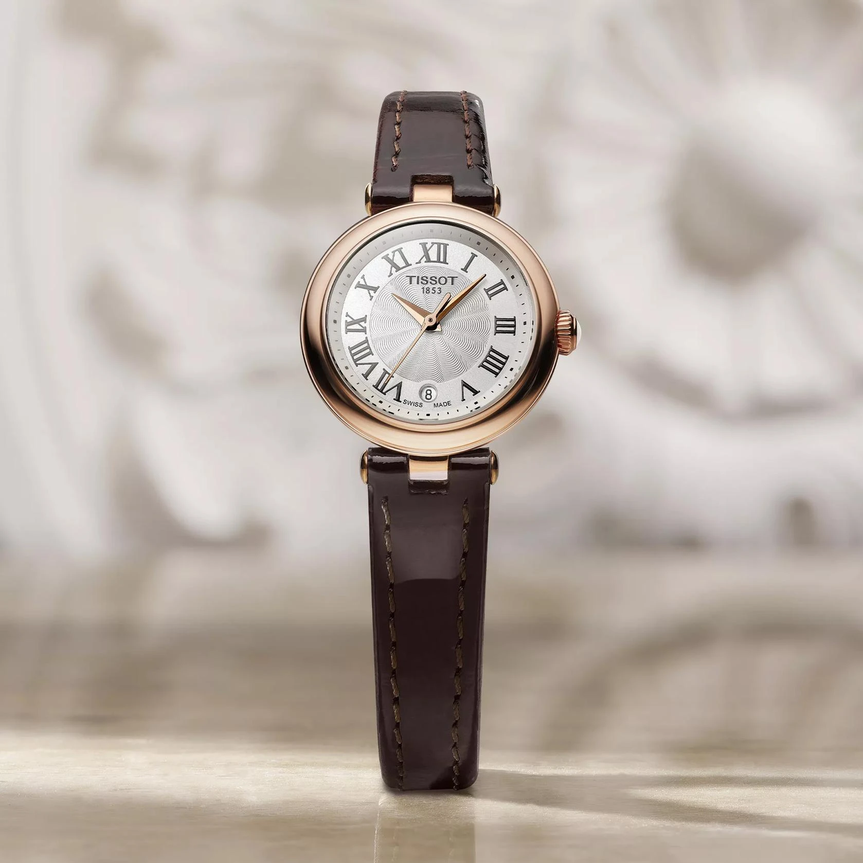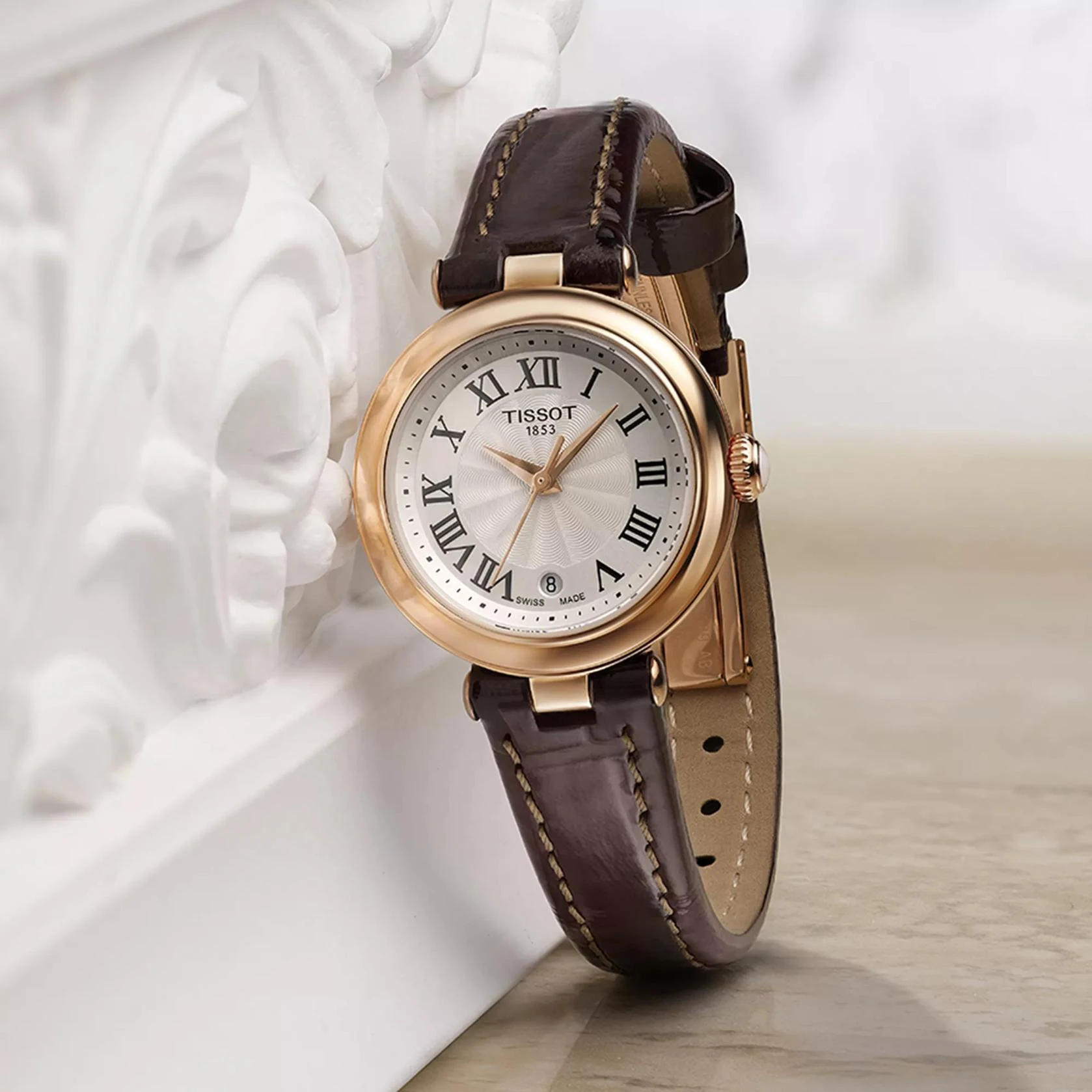 Женские часы Tissot T-Lady T126.010.36.013.00. Точный кварцевый механизм с аналоговой индикацией. Корпус изготовлен из высококачественной нержавеющей стали 316L с высокими антикоррозийными свойствами. Ремешок изготовлен из кожи. Цвет корпуса: Розовое золото. Цвет циферблата: Серебристый. Ширина (с заводной головкой): 26мм. Толщина: 7мм. Гарантия: 2 года.