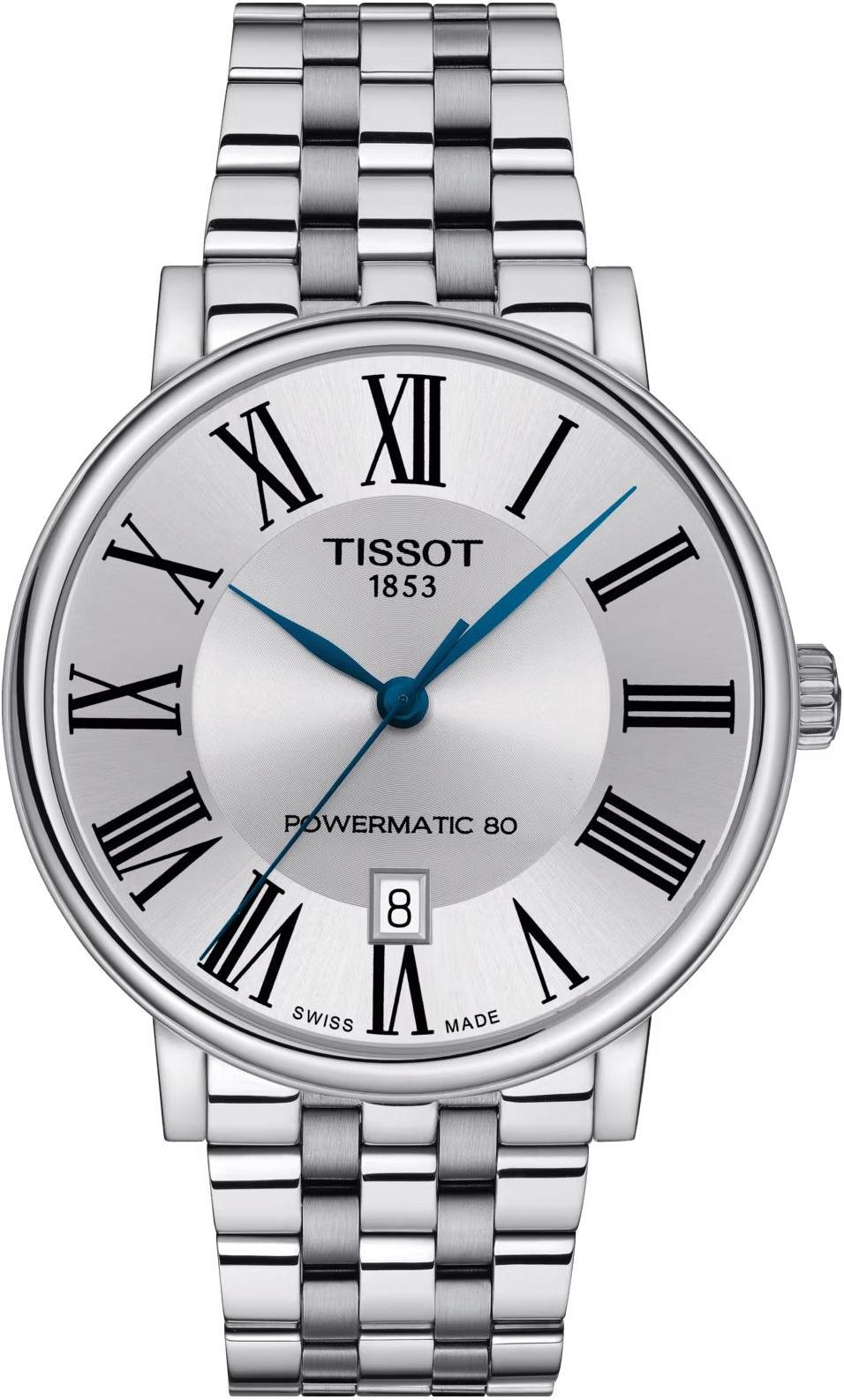 Мужские швейцарские механические часы Tissot Carson Premium Powermatic 80 T122.407.11.033.00 из коллекции Carson стали отражением элегантности и классического часового искусства. Минималистичный циферблат, дополненный синими стрелками и римскими цифрами, привлекает визуальной глубиной. Наручные часы станут привлекательным атрибутом офисного дресс-кода благодаря строгой цветовой гамме, лаконичному дизайну, отсутствию громоздких деталей. Модель комплектуется автоматическим швейцарским механизмом ETA Powermatic 80 с увеличенным резервом хода до 80 часов. Прозрачная задняя крышка позволяет наблюдать за движением деталей калибра. Часы выполнены из стали 316L, материал устойчив к коррозии, повреждениям. Безопасная не допускает случайного раскрытия браслета. Сапфировое стекло препятствует появлению царапин. Класс водонепроницаемости – WR 50. В нижней части циферблата размещено окошко индикации числа.