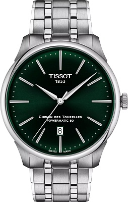 Приобретите Tissot Chemin des Tourelles Powermatic 80 42 mm — воплощение чистых швейцарских часов, названных в честь улицы, ведущей к дому Tissot в горах Швейцарии. Это символ Tissot: круглые, классические, механические, неподвластные времени. Обновленная и усовершенствованная модель обладает слегка выпуклым устойчивым к появлению царапин сапфировым стеклом с антибликовым покрытием, которое расположено над циферблатом "солнечные лучи" зеленого цвета с простыми, элегантными часовыми метками-индексами, каждая из которых имеет грани, улавливающие свет утонченным, но изысканным образом. Под ним находится механизм Nivachron Powermatic 80 — современный автоматический механический калибр 11 1/2 ′′′ (диаметр 25,6 мм) с запатентованной спиралью баланса Nivachron, обеспечивающий запас хода до 80 часов и повышенную антимагнитную защиту. Это часы на все времена — мужские, оригинальные часы в корпусе из нержавеющей стали 316L круглой формы, дополненном прозрачной задней крышкой, с габаритами: длина 42 мм, ширина 42 мм, толщина 11,27 мм и весом 138 г. Браслет из нержавеющей стали серого цвета оснащен застежкой-бабочкой с кнопками и системой быстрой замены. Уровень водозащиты в 50 метров (5 АТМ/bar): выдерживают мытье рук, попадание крупных капель.