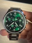 Представляем вашему вниманию Tissot Chrono XL Classic — оригинальные часы, которые подчеркнут вашу индивидуальность и городской стиль. Это мужские швейцарские часы с впечатляющим диаметром корпуса 45 мм и толщиной 11,02 мм. Круглый корпус изготовлен из прочной нержавеющей стали 316L, а циферблат насыщенного зеленого цвета защищен устойчивым к появлению царапин сапфировым стеклом. Оснащенные точным швейцарским кварцевым механизмом (калибр 13\ 1/4''', диаметр 29,8 мм) с индикатором заряда батареи EOL, эти часы также имеют функцию хронографа: 30-минутные счетчики и счетчики 1/10 секунды, центральную 60-секундную стрелку хронографа, а также функции ADD и SPLIT. На стрелки нанесено люминесцентное покрытие Super-LumiNova, обеспечивающее отличную читаемость арабских индексов. Модель комплектуется серым браслетом из нержавеющей стали с раскладной застежкой с кнопками. Вес изделия составляет 175 г. Уровень водозащиты 100 метров (10 АТМ/bar): подходят для плавания и погружения на глубину 5-7 м (выдвигать заводную головку и нажимать кнопки, находясь в воде, нельзя). Коллекция Tissot Chrono XL предлагает множество стилей, но вне зависимости от выбора, Tissot Chrono XL Classic точно раскроют вашу индивидуальность.