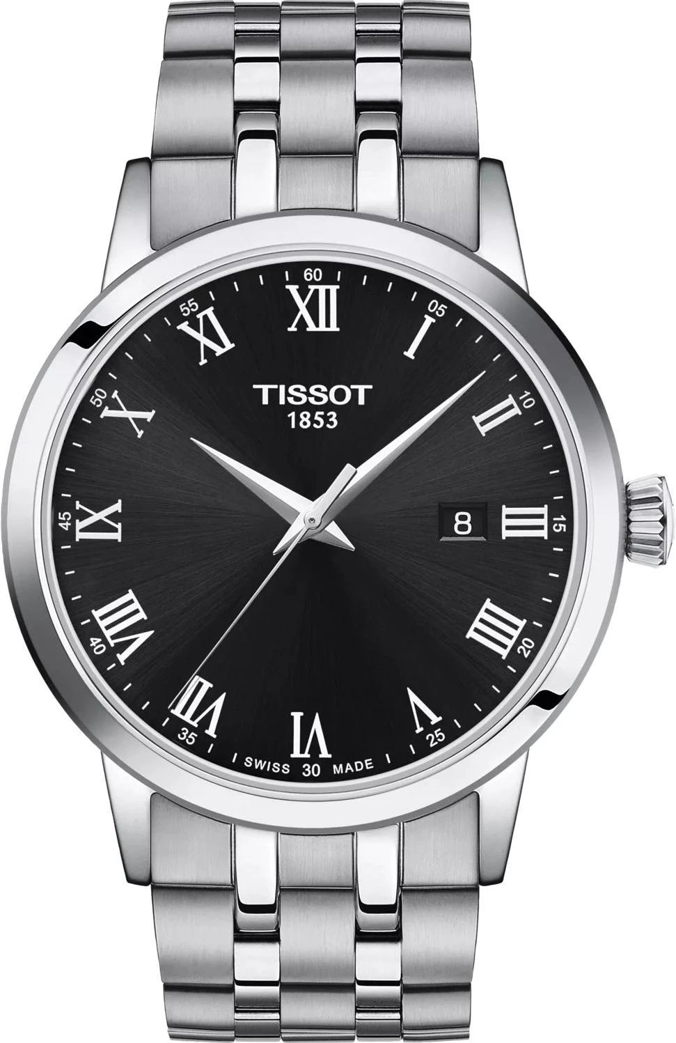 Откройте для себя элегантность и точность с моделью Tissot Classic Dream — это мужские оригинальные часы, которые станут идеальным дополнением как к строгому деловому костюму, так и к повседневному образу. Эти швейцарские часы оснащены кварцевым механизмом, калибр 111/2′′′, диаметр которого составляет 25,6 мм. Корпус круглой формы изготовлен из высококачественной нержавеющей стали 316L, а циферблат черного цвета защищен устойчивым к царапинам сапфировым стеклом. На циферблате использованы римские индексы. Часы обладают индикацией EOL (индикатор окончания срока службы батареи). Толщина корпуса — 8,05 мм, а диаметр (длина и ширина) — 42,0 мм. Расстояние между ушками составляет 22,0 мм. Модель комплектуется браслетом из нержавеющей стали серого цвета с застежкой-бабочкой с кнопками. Вес часов — 139 г. Уровень водозащиты 50 метров (5 АТМ/bar): выдерживают мытье рук, попадание крупных капель.