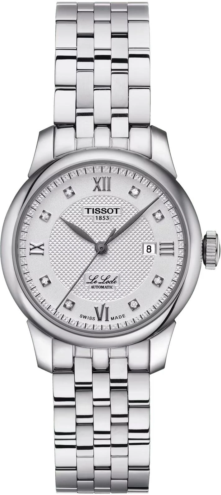 Женские наручные часы из коллекции Le Locle отражают швейцарские традиции бренда, классическая модель сохранит актуальность во все времена. Стильный и изящный аксессуар имеет компактный циферблат с характерным узором, в качестве украшения используются сияющие бриллианты цвета Top Wesselton. Лёгкий оттенок ретро придают римские цифры. Автоматический калибр ETA 2671 с запасом хода 38 часов. Сапфировое стекло. Нержавеющая сталь 316L. Прозрачная задняя крышка.