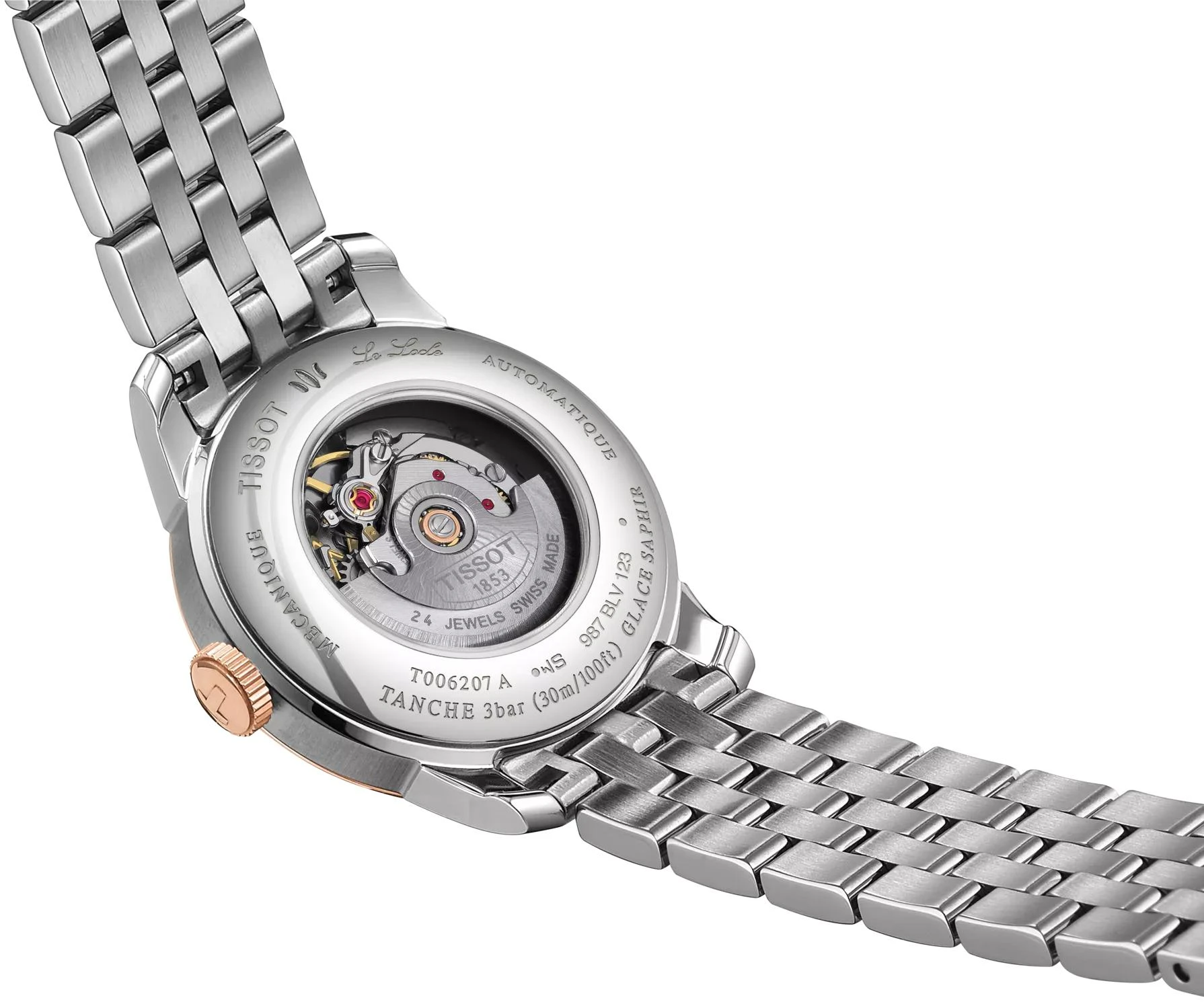Приобретая эти оригинальные часы, вы получаете воплощение швейцарских традиций и изысканного стиля, названное в честь Ле-Локля — города, который является колыбелью часового искусства и родиной бренда Tissot. Эти элегантные женские часы Tissot Le Locle Automatic Lady, артикул T006.207.22.036.00, демонстрируют утонченное мастерство, присущее швейцарским часам, и оснащены надежным автоматическим механизмом (Swiss automatic) с запатентованной спиралью баланса Nivachron и запасом хода до 48 часов. Круглый корпус диаметром 29 мм и толщиной 8,95 мм выполнен из нержавеющей стали 316L с PVD-покрытием цвета розового золота, которое гармонично сочетается с браслетом с PVD-покрытием серого и розового золота 5N, оснащенным застежкой-бабочкой с кнопками. Серебристый циферблат под устойчивым к царапинам сапфировым стеклом украшен римскими цифрами и 8 бриллиантами (Single cut 8/8, цвет Top Wesselton, чистота VS-SI) общим весом 0,03 карата, подчеркивая классическую элегантность модели, а через прозрачную заднюю крышку можно любоваться работой механизма. Модель весом 77 г обладает минимальной защитой от мелких брызг — водонепроницаемость 30 метров (3 АТМ/bar). Часы не предназначены для погружения в воду.