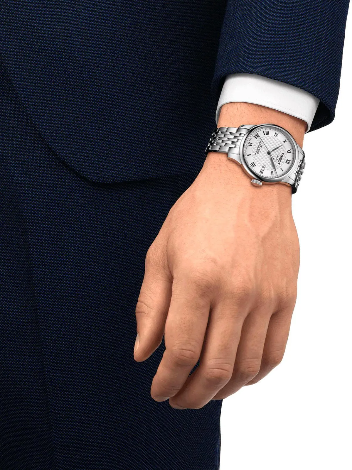 Почувствуйте прикосновение истории часового мастерства с моделью Tissot Le Locle Powermatic 80 — оригинальными часами, названными в честь исторической родины Tissot, расположенной в швейцарских горах Юра. Это не просто часы, а символ элегантности и традиций, что делает их одними из самых популярных в автоматической линейке. Эти мужские часы обладают диаметром корпуса 39,3 мм, длиной 39,3 мм и толщиной всего 9,75 мм, а их вес составляет 122 г. Корпус круглой формы изготовлен из высококачественной нержавеющей стали 316L и дополнен прозрачной задней крышкой, позволяющей любоваться работой швейцарского механизма с калибром 11 1/2''' и диаметром 25,6 мм. Благодаря запасу хода до 80 часов и запатентованной спирали баланса Nivachron часы гарантируют исключительную точность. Циферблат серебристого цвета с римскими индексами защищен устойчивым к царапинам сапфировым стеклом. Браслет из нержавеющей стали серого цвета оснащен застежкой-бабочкой с кнопками. Водонепроницаемость часов составляет 30 метров (3 АТМ/bar): минимальная защита от мелких брызг, не предназначены для погружения в воду. Изящная элегантность, дополненная деталями, такими как римские цифры и традиционная подпись Le Locle, завершает образ классического шика этих швейцарских часов.