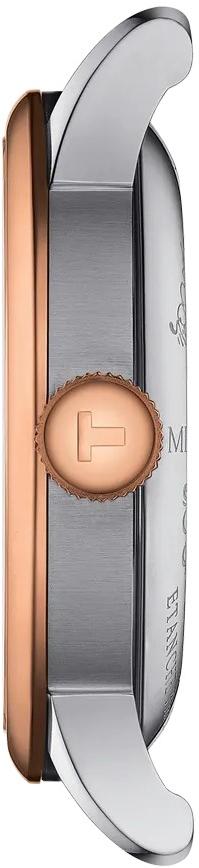 Мужские швейцарские часы из коллекции Le Locle. Узорчатый циферблат, минутные метки по внешнему краю, прозрачная задняя крышка украшена гравировкой традиционной подписи Le Locle, тонкие стрелки и римские цифры. На корпус и продольные звенья браслета нанесено PVD-покрытие цвета розового золота. Автоматический калибр Powermatic 80 с запасом хода 80 часов. Сапфировое стекло, обладающее высокой прозрачностью. Застёжка-бабочка с кнопками.