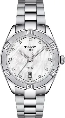 Позвольте представить вам оригинальные часы Tissot PR 100 Sport Chic 36mm, артикул T101.910.22.116.00, созданные для того, чтобы стать вашим идеальным спутником на каждый день и для любого случая, символизируя роскошь, качество и классический стиль. Эти изысканные женские часы из коллекции Tissot PR 100 отличаются простым и элегантным циферблатом, за который так ценится эта линейка, а их минималистичный дизайн отражает изысканность. Модель оснащена надежным швейцарским кварцевым механизмом калибра 10 1/2''' с диаметром 23.30 мм, что гарантирует исключительную точность хода. Круглый корпус часов изготовлен из нержавеющей стали 316L с PVD-покрытием цвета розового золота, а его размеры составляют: длина 36 мм, ширина 36 мм и толщина всего 9 мм, что обеспечивает комфортное ношение. При весе 112 г эти часы прекрасно ощущаются на запястье. Белый перламутровый циферблат украшен 12 бриллиантами (характеристики бриллиантов: 0,05 карата, цвет Top Wesselton, чистота VS-SI, огранка 8/8 Single cut), что придает им особое сияние и роскошь. Индексы и стрелки имеют люминесцентное покрытие Super-LumiNova для считывания времени в темноте. Часы защищены устойчивым к царапинам сапфировым стеклом с антибликовым покрытием. Браслет, выполненный из нержавеющей стали с PVD-покрытием, сочетает в себе серый цвет и розовое золото 5N и оснащен раскладной застежкой с кнопками. Водонепроницаемость 100 метров (10 АТМ/bar) — эти часы подходят для плавания и погружения на глубину 5-7 м (выдвигать заводную головку и нажимать кнопки, находясь в воде, нельзя). Выбирая эти швейцарские часы, вы делаете ставку на безупречное качество и вневременной дизайн.