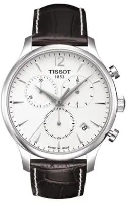 <b>Швейцарские часы Tradition Chronograph для мужчин. Современный классический стиль с элементами ретро дизайна. Тонкий круглый корпус из нерж. стали, кожаный ремешок с браслетной застежкой. Сапфировое стекло. Кварцевый механизм с хронографом.</b><br><br>• Швейцарский кварцевый механизм ETA, калибр G10.211, на 4 камнях. • Точность хода с погрешностью не более -12/+18 секунд в месяц. • Элемент питания №394 со сроком службы 38 месяцев. • Хронограф с функцией ADD и SPLIT, центральная секундная стрелка, 30-минутным и 1/10-секундным индикаторами на «9» и «3 часах» соответственно. • Центральные часовая и минутная стрелки, маленькие секунды на «6 часах». • Индикация даты в апертуре на отметке «4 часа». • EOL - индикация низкого уровня заряда батарейки посредством движения секундной стрелки.<br>• Корпус из нержавеющей стали 316L, поверхности с матовой шлифовкой (сатинирование) и полировкой до зеркального блеска.<br>• Диаметр корпуса составляет 42 мм, толщина – 11,1 мм.<br>• Сапфировое стекло повышенной стойкостью к возникновению царапин.<br>• Циферблат с лакированной поверхностью, аппликация часовых индексов и цифр с покрытием цвета золота или никелировкой.<br>• Защелкивающаяся задняя крышка с гравировкой.<br>• Водостойкость 30 метров (3АТМ).<br>• Кожаный ремешок с тиснением, браслетная застежка тройного сложения типа "бабочка"