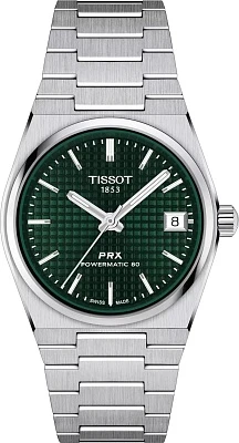 Почувствуйте гармоничное слияние винтажного шарма и современных технологий с моделью Tissot PRX 35mm Powermatic 80 — оригинальные часы под артикулом T137.207.11.091.00, которые станут идеальным дополнением образа. Эти женские часы, произведенные в Швейцарии, воплощают классическое наследие 1978 года, представляя его в современном прочтении с корпусом "бочка" из высококачественной нержавеющей стали 316L, дополненным прозрачной задней крышкой, позволяющей любоваться работой швейцарских часов. При диаметре 35 мм и толщине 10.93 мм, вес часов составляет 104 г, что обеспечивает комфорт при ношении. Защита циферблата насыщенного зеленого цвета, украшенного индексами и уникальным узором «вафля», выполнена из устойчивого к царапинам сапфирового стекла с антибликовым покрытием. Внутри установлен надежный автоматический механизм калибра 11 1/2''' с диаметром 25.6 мм, оснащенный запатентованной балансовой пружиной Nivachron, гарантирующий впечатляющий запас хода до 80 часов. Стрелки обработаны люминесцентным покрытием Super-LumiNova для идеальной читаемости в темноте. Часы оснащены стальным браслетом серого цвета с быстрым механизмом замены и застежкой-бабочкой с кнопками, что подчеркивает их практичность и изысканный стиль. Водонепроницаемость составляет 100 метров (10 АТМ/bar): они подходят для плавания и погружения на глубину 5–7 м (выдвигать заводную головку и нажимать кнопки, находясь в воде, нельзя), делая эту модель надежным спутником для современной женщины.