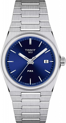 Ищете изящные, элегантные женские часы с подлинным духом 70-х годов — тогда взгляните на Tissot PRX T137.210.11.031.00. Модель 35 мм в форме «бочка» точно передает суть и размеры оригинальной версии 1978 года, на ретро-дизайне которой основан PRX. Их выразительный облик делает эти оригинальные часы незаменимыми для всех ценителей дизайна. Корпус из нержавеющей стали 316L имеет длину 34,6 и ширину 35 мм при толщине всего 9,6 мм, а вес модели составляет 97 г. Швейцарские часы оснащены кварцевым механизмом EOL (с индикатором разряда батареи), калибр 10 1/2''' с диаметром 23.3 мм, работающим от батарейки Renata 371. Циферблат серебристого цвета с индексами защищен устойчивым к появлению царапин сапфировым стеклом. Люминесцентный материал Super-LumiNova на стрелках обеспечивает отличную читаемость в темноте. Водонепроницаемость 100 метров (10 АТМ/bar): подходят для плавания и погружения на глубину 5–7 м (выдвигать заводную головку и нажимать кнопки, находясь в воде, нельзя). Часы комплектуются браслетом из нержавеющей стали серого цвета с быстросъемным креплением, которое позволяет легко заменить его при желании, и оснащены застежкой «бабочка» с кнопками.