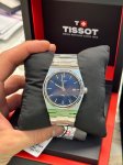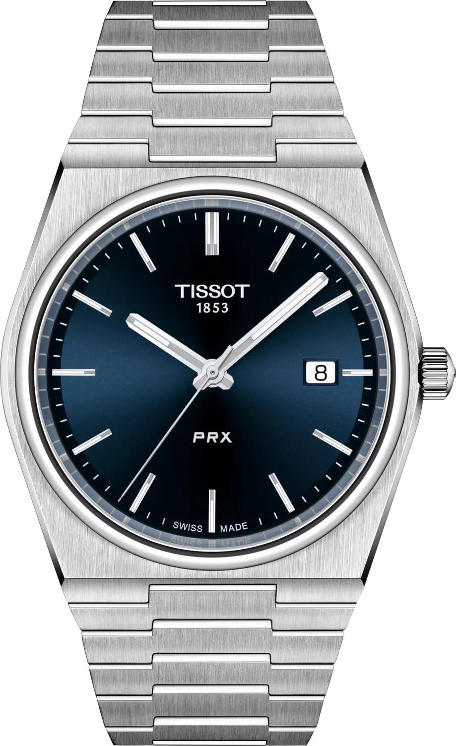 Высококлассные мужские оригинальные часы Tissot PRX 40mm — воплощение швейцарского мастерства и стиля. Новые часы Tissot PRX 40mm, возрождение легендарной модели 1978 года, станут отличным аксессуаром для тех, кто ценит дизайн и изобретательность. Часы имеют форму «бочка» (Tonneau shape) и корпус из нержавеющей стали 316L. Диаметр корпуса составляет 40 мм, длина — 39,5 мм, а толщина — 10,4 мм. Весят часы 130 г. Благодаря устойчивому к царапинам сапфировому стеклу циферблат насыщенного синего цвета с индексами всегда будет выглядеть безупречно. Стрелки оснащены люминесцентным покрытием Super-LumiNova, обеспечивающим отличную читаемость в темноте. Внутри корпуса установлен высокоточный швейцарский кварцевый механизм с калибром 11 1/2''' и диаметром 25,6 мм, работающий от батареи Renata 371 и имеющий функцию EOL (индикатор окончания срока службы батареи). Модель обладает водонепроницаемостью 100 метров (10 АТМ/bar): подходят для плавания и погружения на глубину 5-7 м (выдвигать заводную головку и нажимать кнопки, находясь в воде, нельзя). Часы комплектуются браслетом из нержавеющей стали серого цвета с застежкой-бабочкой с кнопками и возможностью быстрой замены, что позволит легко менять образ в зависимости от ситуации.
