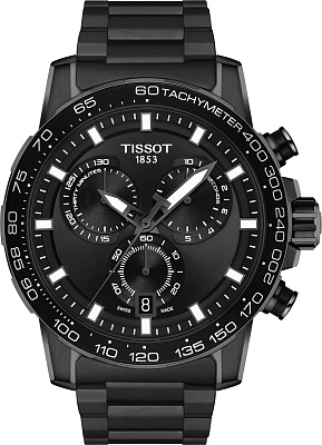 Выбирая оригинальные часы, обратите внимание на мужские Tissot Supersport Chrono — идеальный аксессуар для с выраженным стилем, который не останется незамеченным! Демонстрируя элегантность, эти спортивные хронографы прекрасно располагаются на запястье. Модель оснащена надежным швейцарским кварцевым механизмом с калибром 13 1/4''' и диаметром 29,8 мм, а также функцией EOL (индикатор окончания срока службы батареи), которая своевременно сообщит о необходимости замены элемента питания Renata 394. Часы имеют корпус из нержавеющей стали 316L с черным PVD-покрытием и алюминиевым безельным кольцом.Эти швейцарские часы дополнены черным циферблатом с индексами и центральной 60-секундной хронографической стрелкой, а также 30-минутным и 1/10-секундным счетчиками. В корпус круглой формы размером 45,5x45,5 мм и толщиной 11,92 мм встроено устойчивое к появлению царапин сапфировое стекло. Для удобства считывания времени в темноте, стрелки покрыты люминесцентным составом Super-LumiNova. Функции хронографа включают ADD и SPLIT. Вес этих часов составляет 188 г. Модель комплектуется черным браслетом из нержавеющей стали с PVD-покрытием и раскладной застежкой с защитой, а также системой быстрой замены, что позволяет легко персонализировать изделие, сочетая его с другим ремешком. Уровень водозащиты 100 метров (10 АТМ/bar): подходят для плавания и погружения на глубину 5-7 м (выдвигать заводную головку и нажимать кнопки, находясь в воде, нельзя).