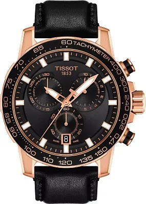 Откройте для себя оригинальные часы Tissot Supersport Chrono — идеальный выбор для современного мужчины, ценящего точность и стиль. Эти мужские швейцарские часы выпущены в знак уважения к универсальным ценностям регби. В основе часов лежит швейцарский кварцевый механизм с калибром 13 1/4''' и диаметром 29,8 мм, оснащенный индикатором окончания срока службы батареи (EOL). Корпус из нержавеющей стали 316L с PVD-покрытием цвета розового золота и безелем из алюминия имеет размеры 45,5 x 45,5 мм и толщину 11,92 мм, а вес составляет 104 г. Циферблат черного цвета с индексами защищен устойчивым к царапинам сапфировым стеклом. Среди функций — центральная 60-секундная стрелка хронографа, 30-минутные счетчики и счетчик 1/10 секунды, а также функции ADD и SPLIT. Водозащита 100 метров (10 АТМ/bar) — подходят для плавания и погружения на глубину 5-7 м (выдвигать заводную головку и нажимать кнопки, находясь в воде, нельзя). Модель дополнена черным кожаным ремешком с шириной ушка 22 мм и стандартной застежкой, обладающим функцией быстрой замены.