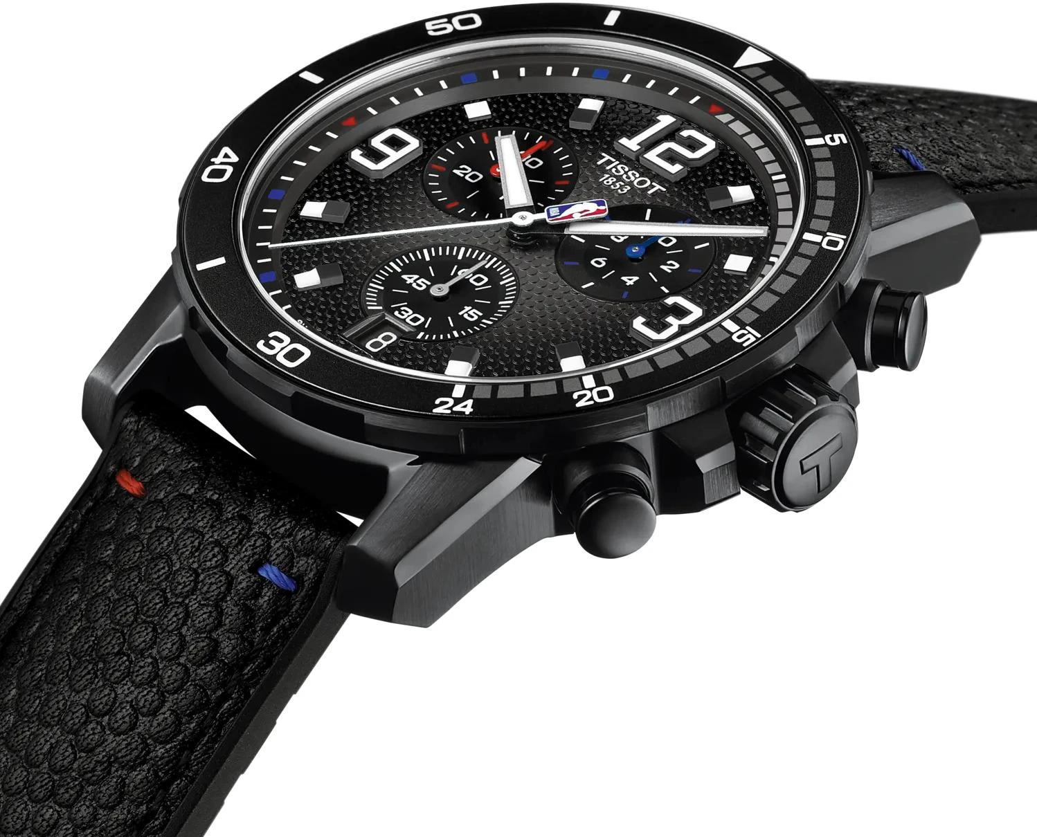 Мужские оригинальные часы Tissot Supersport NBA Special Edition — это дань уважения баскетболу с продуманными деталями и спортивным стилем. Привлекающий внимание 45,5 x 45,5 мм корпус из нержавеющей стали 316L с черным PVD-покрытием имеет безель, на котором указано правило 24 секунд, взятое из таймера отсчета броска NBA, с цветными акцентами, намекающими на лигу. Циферблат, украшенный точечным узором в виде баскетбольного мяча и градиентом от темно-серого до черного по краям, создает иллюзию глубины, повторяющую форму мяча. Цифровые индексы, как на майке игрока, добавляют значимый штрих, а логотип NBA на секундной стрелке служит дополнительной данью уважения к спорту. Ремешок из двух материалов черного цвета дополняет текстуру циферблата, что делает его идеальным для повседневного ношения и физических нагрузок. Задняя крышка хранит истинную скрытую жемчужину: замысловатую гравировку логотипа NBA, окруженного городами и штатами, от которых команды берут свои названия, как Западной, так и Восточной конференции. Эти швейцарские часы оснащены кварцевым механизмом хронографа, обеспечивающим точное измерение времени при минимальном обслуживании. Эти швейцарские часы имеют толщину 11,92 мм и вес 120 г, обладают минимальным уходом благодаря кварцевому механизму и индикатору EOL, который сообщит об окончании срока службы батареи. Корпус часов с черным PVD-покрытием и алюминиевым кольцом безеля дополнен гравированной задней крышкой, а для защиты циферблата используется устойчивое к царапинам сапфировое стекло с антибликовым покрытием. Часы оснащены функциями хронографа: 30-минутный счетчик и счетчик 1/10 секунды, центральная 60-секундная стрелка хронографа, функции ADD и SPLIT. Уровень водозащиты 100 метров (10 АТМ/bar): подходят для плавания и погружения на глубину 5-7 м (выдвигать заводную головку и нажимать кнопки, находясь в воде, нельзя).
