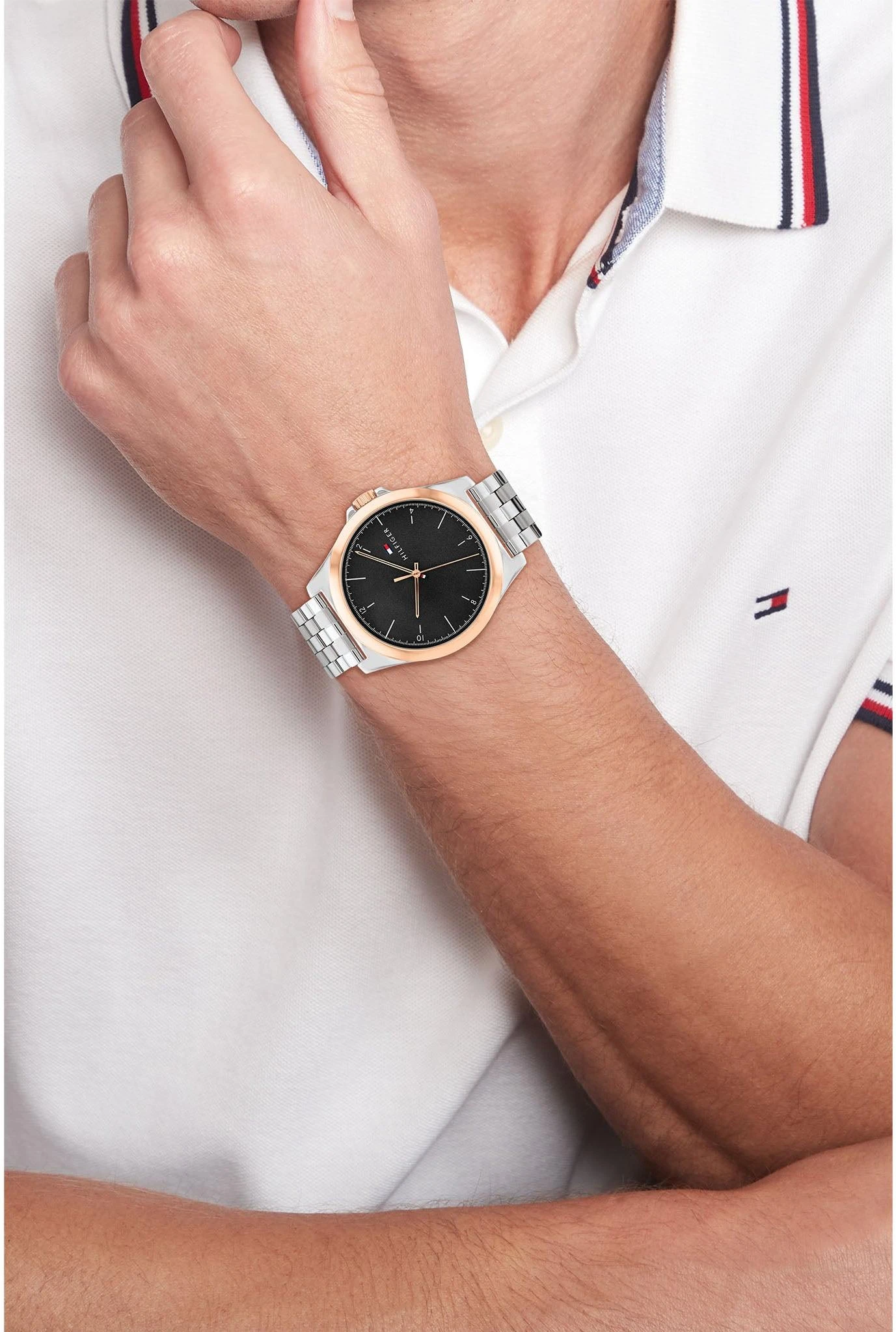 Устали от устаревших и ненадежных часов? Обновитесь до мужских часов Tommy Hilfiger из нержавеющей стали с черным циферблатом — 1710545. Эти высококачественные часы отличаются элегантным 42-миллиметровым корпусом, прочным минеральным стеклом и стильным черным циферблатом. Браслет из нержавеющей стали одновременно удобен и роскошен, а водонепроницаемость 3 бара обеспечивает долговечность и функциональность. Приготовьтесь привлечь к себе внимание и заявить о себе с этими незаменимыми часами.