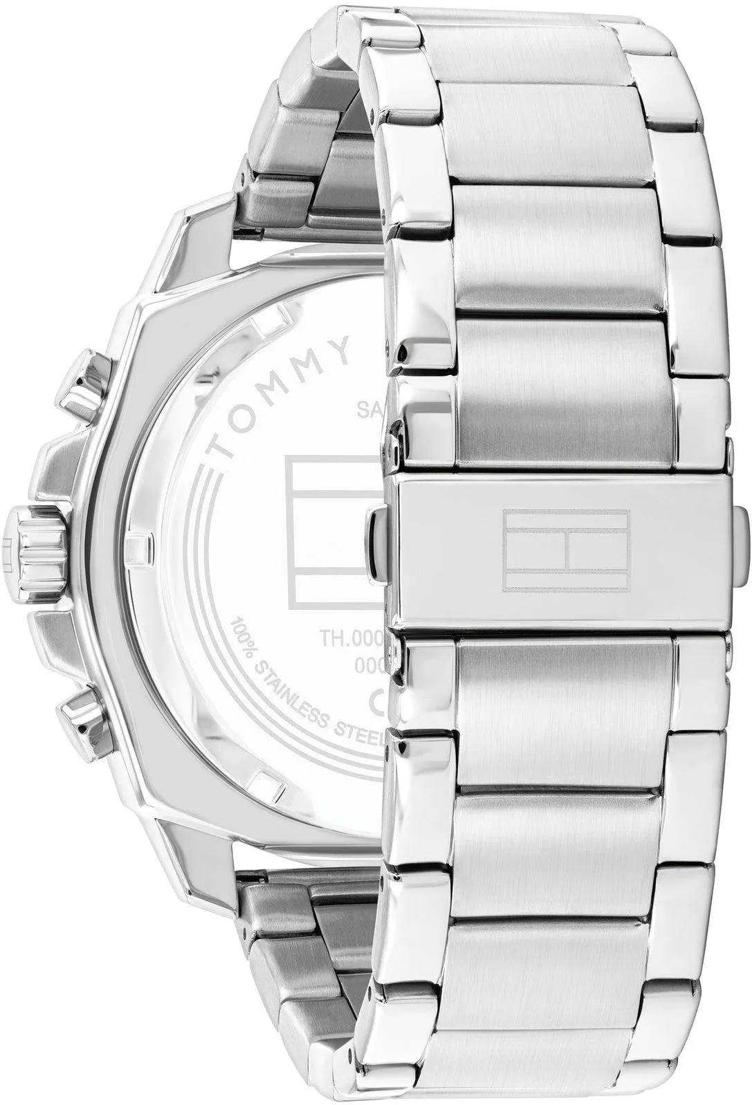 Мужские спортивные часы Tommy Hilfiger 1710689 с кварцевым механизмом сочетают динамичный дизайн и многофункциональность. Модель с массивным корпусом из нержавеющей стали (48 мм) демонстрирует черный циферблат с практичными индикаторами дня недели, даты и 24-часовой шкалой. Люминесцентное покрытие стрелок и индексов обеспечивает четкую видимость в условиях слабого освещения. Широкий 24-миллиметровый стальной браслет гармонично дополняет облик часов, а водонепроницаемость 5 атмосфер (50 метров) защищает от брызг и дождя, делая эту модель идеальным выбором для активного образа жизни и повседневной носки.