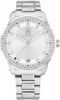 Женские часы Tommy Hilfiger 1782757 из коллекции TH85 — это изысканное сочетание элегантности и функциональности. Модель с серебристым циферблатом украшена индексами из кристаллов и окошком даты в положении «6 часов». Светящиеся стрелки и серебристая секундная стрелка с черным наконечником обеспечивают удобство считывания времени в любое время суток. Корпус диаметром 36 мм из нержавеющей стали обрамлен безелем с россыпью кристаллов, а стальной браслет с инкрустированными средними звеньями и раскладывающейся застежкой с логотипом TH подчеркивает утонченный дизайн. Благодаря кварцевому механизму и водонепроницаемости до 50 метров (5 бар) часы станут надежным и стильным аксессуаром для современной женщины.
