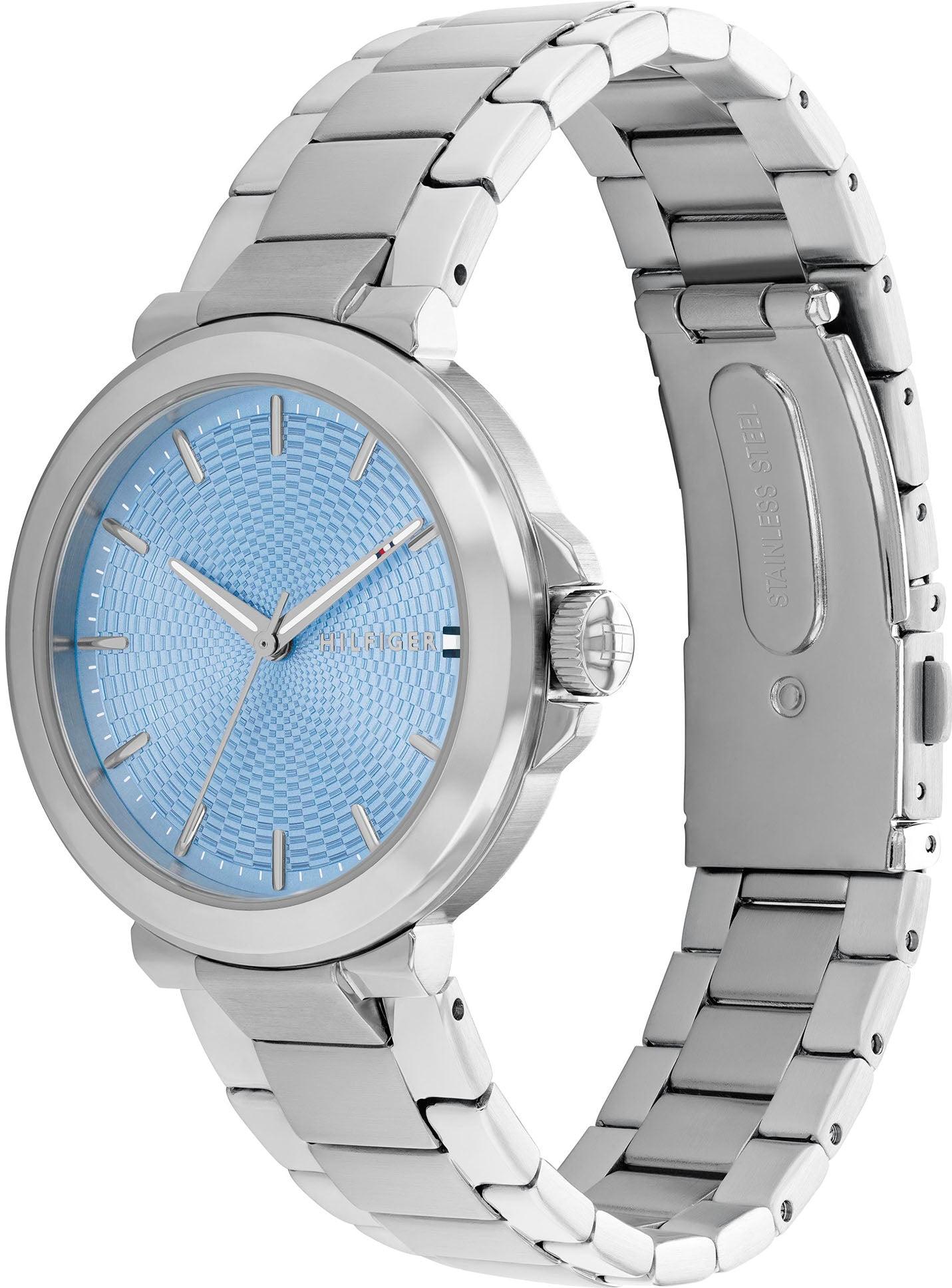 Женские часы Tommy Hilfiger с ярким синим циферблатом — это гармония элегантности и надежности. Модель с корпусом диаметром 34 мм из нержавеющей стали оснащена точным кварцевым механизмом и защищена прочным минеральным стеклом. Стальной браслет шириной 9 мм с кнопочной застежкой обеспечивает комфорт и удобную посадку на запястье. Благодаря водонепроницаемости 5 АТМ часы устойчивы к брызгам, дождю и кратковременному погружению в воду, что делает их идеальным аксессуаром для повседневного образа. Строгий дизайн и универсальность подчеркнут ваш стиль в любой ситуации.