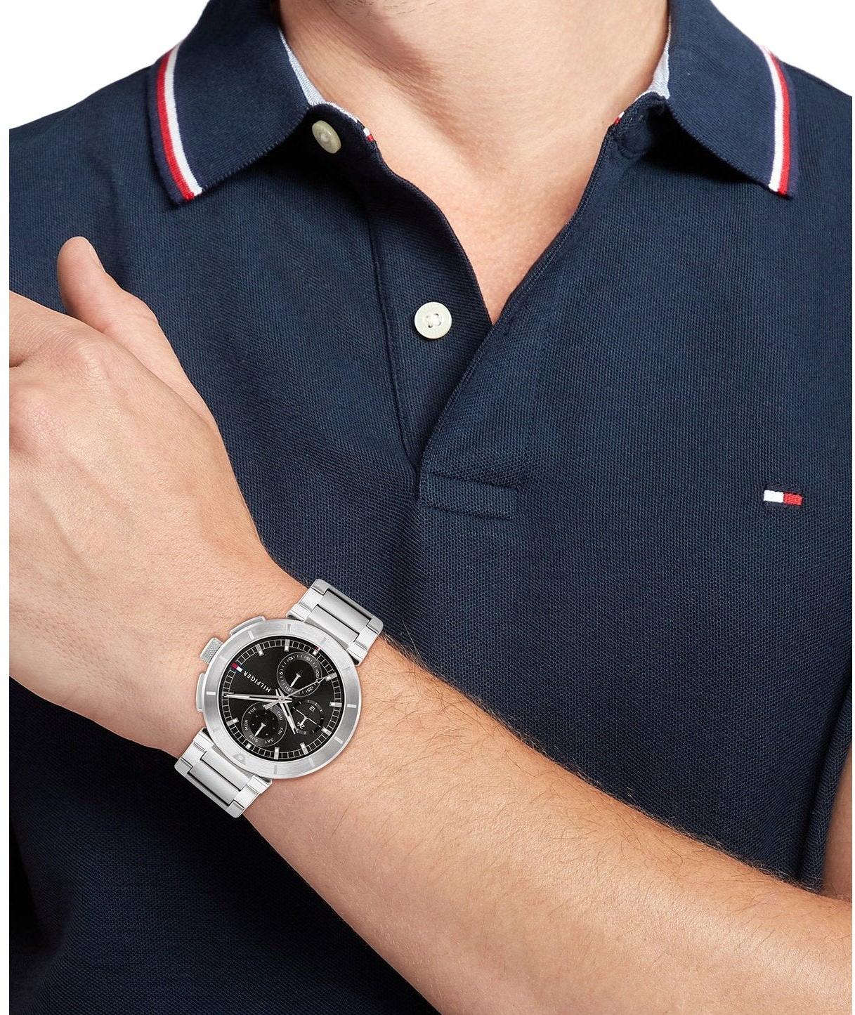 Представляем многофункциональные мужские часы Tommy Hilfiger из нержавеющей стали с черным циферблатом — 1792116. Они оснащены точным кварцевым механизмом и имеют элегантный корпус диаметром 44 мм. Толщина корпуса 10,7 мм и ширина ремешка 14,05 мм обеспечивают удобную посадку, а циферблат из минерального стекла и ремешок из нержавеющей стали — дополнительную прочность. Эти часы водонепроницаемы до 5 АТМ и оснащены раскладывающейся застежкой с кнопкой. Подчеркните свой стиль и функциональность с этими незаменимыми часами.
