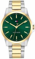 Мужские наручные часы Tommy Hilfiger 1792192 сочетают в себе функциональность и стильный внешний вид. Часы с кварцевым механизмом изготовлены из нержавеющей стали, их корпус имеет ширину 42 мм и толщину 10 мм. Оправа, стрелки, индексы и центральная часть браслета имеют золотистый цвет, что создает приятный контраст со стальным корпусом и браслетом. Зеленый циферблат защищен минеральным стеклом. Ширина двухцветного стального браслета от места крепления составляет 22 мм. Tommy Hilfiger 1792192 относятся к классу водонепроницаемости 50 м / 5 атм, то есть к ограниченно водонепроницаемым (плавание не рекомендуется).