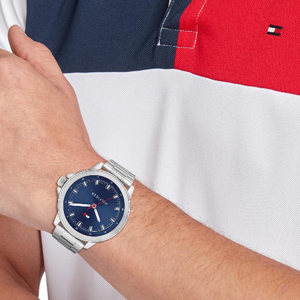 Мужские наручные часы Tommy Hilfiger Layla 1792024. Точный кварцевый механизм с аналоговой индикацией. Корпус изготовлен из высококачественной нержавеющей стали 316L с высокими антикоррозийными свойствами. На стрелки и отметки нанесен светонакопительный состав, благодаря этому считывать информацию с циферблата возможно и в темноте. Браслет из нержавеющей стали. Прочное, устойчивое к царапинам минеральное стекло защищает часы от повреждений. Часы являются водонепроницаемыми до 5 Бар. Цвет корпуса: Серебристый. Цвет циферблата: Синий. Ширина (с заводной головкой): 46мм. Толщина: 11мм. Гарантия: 1 год.
