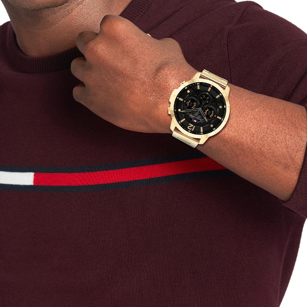 Мужские наручные часы Tommy Hilfiger Luna 1710511. Точный кварцевый механизм с аналоговой индикацией. Браслет из нержавеющей стали. Функция хронографа. Браслет из нержавеющей стали. Прочное, устойчивое к царапинам минеральное стекло защищает часы от повреждений. На циферблате отображается текущее число месяца и день недели. Часы являются водонепроницаемыми до 5 Бар. Цвет циферблата: Желтое золото. Цвет корпуса: Черный. На стрелки и отметки нанесен светонакопительный состав, благодаря этому считывать информацию с циферблата возможно и в темноте. Толщина: 12 мм. Гарантия: 1 год.