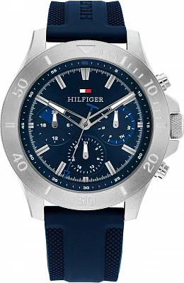 Мужские наручные часы Tommy Hilfiger Multifunction 1792222. Точный кварцевый механизм с аналоговой индикацией. В отличие от механических часов, не требуют завода и работают от батареи, показывая отклонение всего несколько секунд в месяц. Браслет из нержавеющей стали обладает высокой прочностью и износостойкостью, обеспечивая долговечность даже при активной эксплуатации. Материал устойчив к коррозии и сохраняет свой внешний вид надолго. Отображение времени возможно в 12-часовом или 24-часовом формате. Корпус изготовлен из высококачественной нержавеющей стали 316L с высокими антикоррозийными свойствами. Прочное, устойчивое к царапинам минеральное стекло защищает часы от повреждений. Часы являются водонепроницаемыми до 5 Бар. Цвет корпуса: Серебристый. Цвет циферблата: Синий. Толщина: 10.5 мм. Гарантия: 1 год.