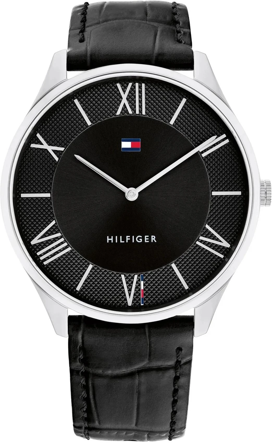 Мужские наручные часы Tommy Hilfiger Becker 1710516. Точный кварцевый механизм с аналоговой индикацией. Ремешок изготовлен из кожи. Браслет из нержавеющей стали. Прочное, устойчивое к царапинам минеральное стекло защищает часы от повреждений. Часы являются водонепроницаемыми до 3 Бар. Цвет циферблата: Серебристый. Цвет корпуса: Черный. Толщина: 6 мм. Гарантия: 1 год.