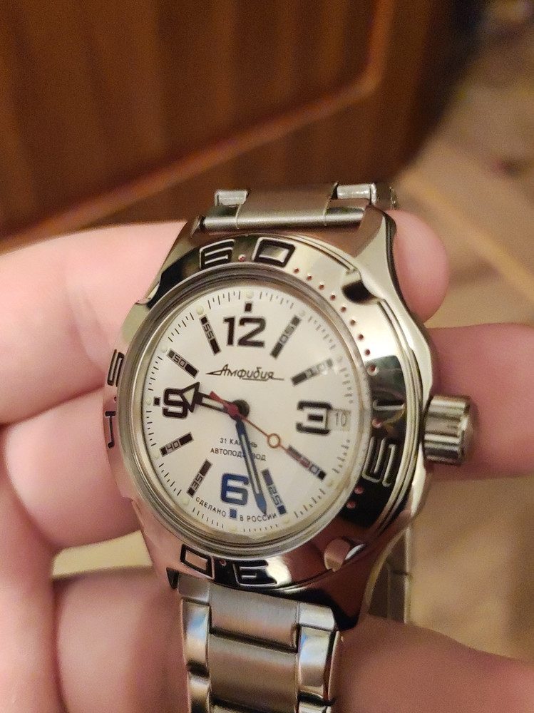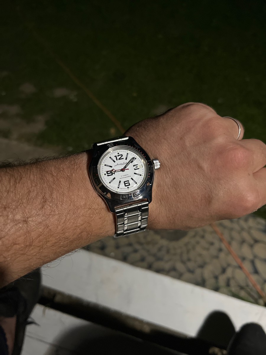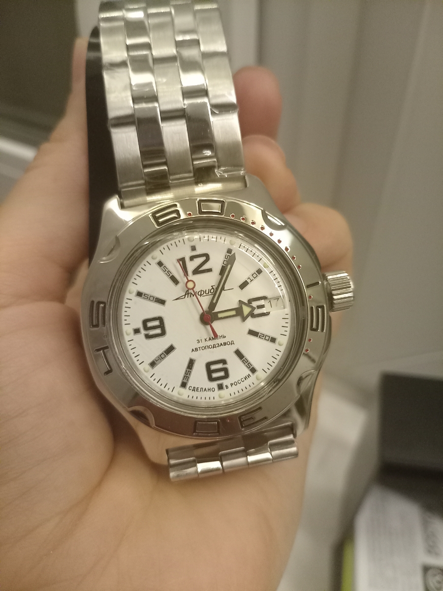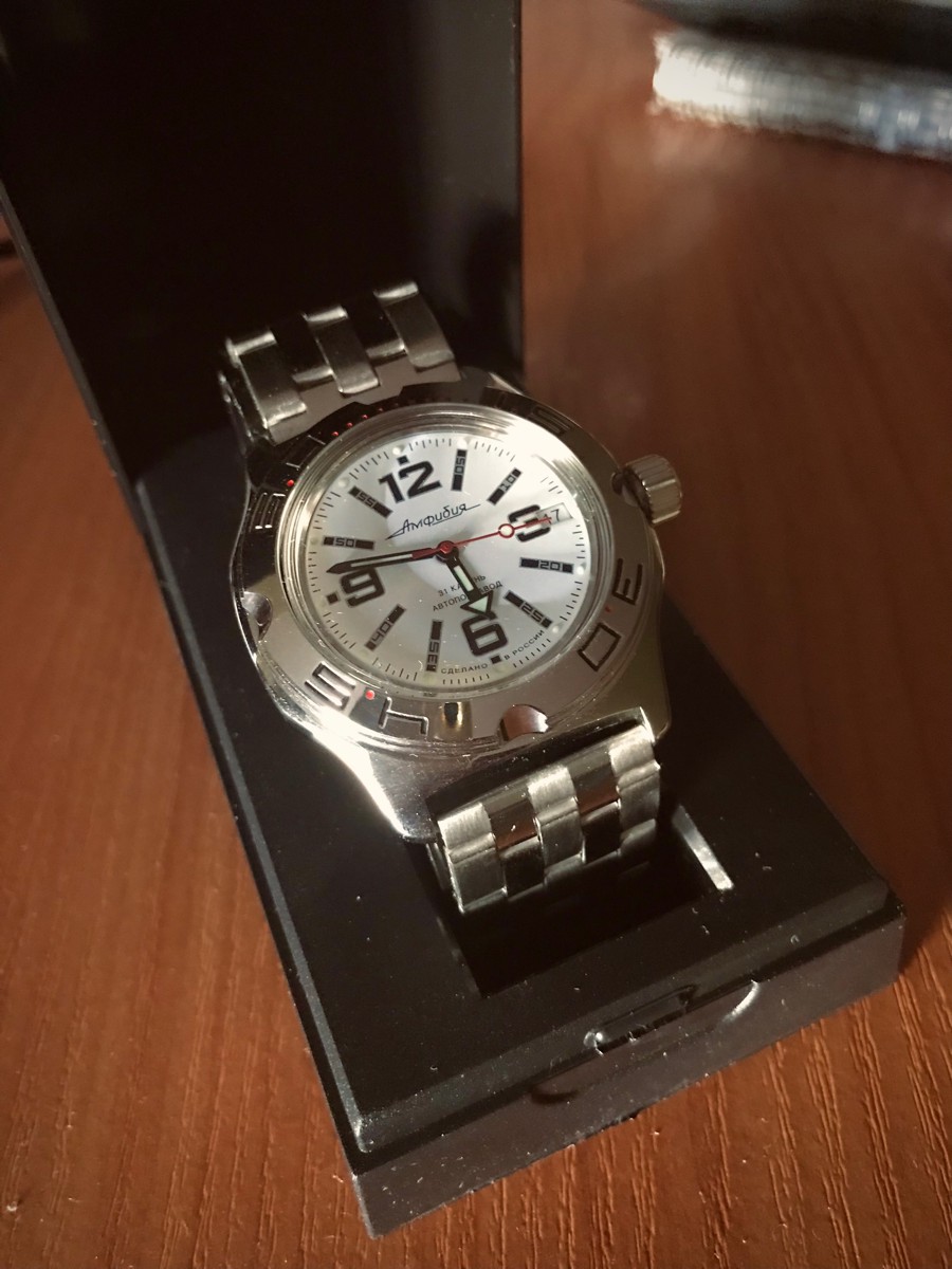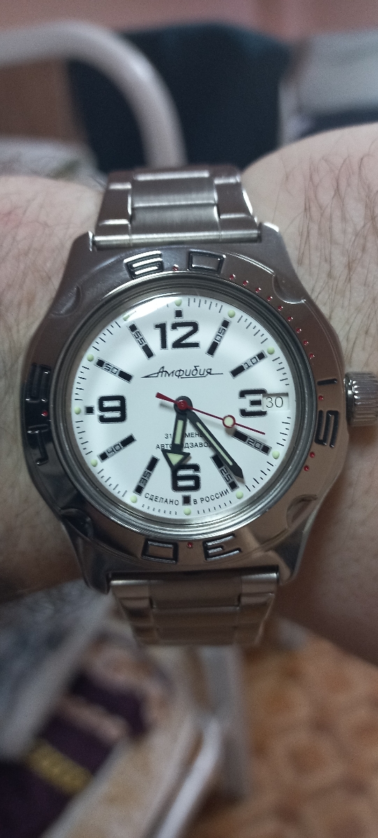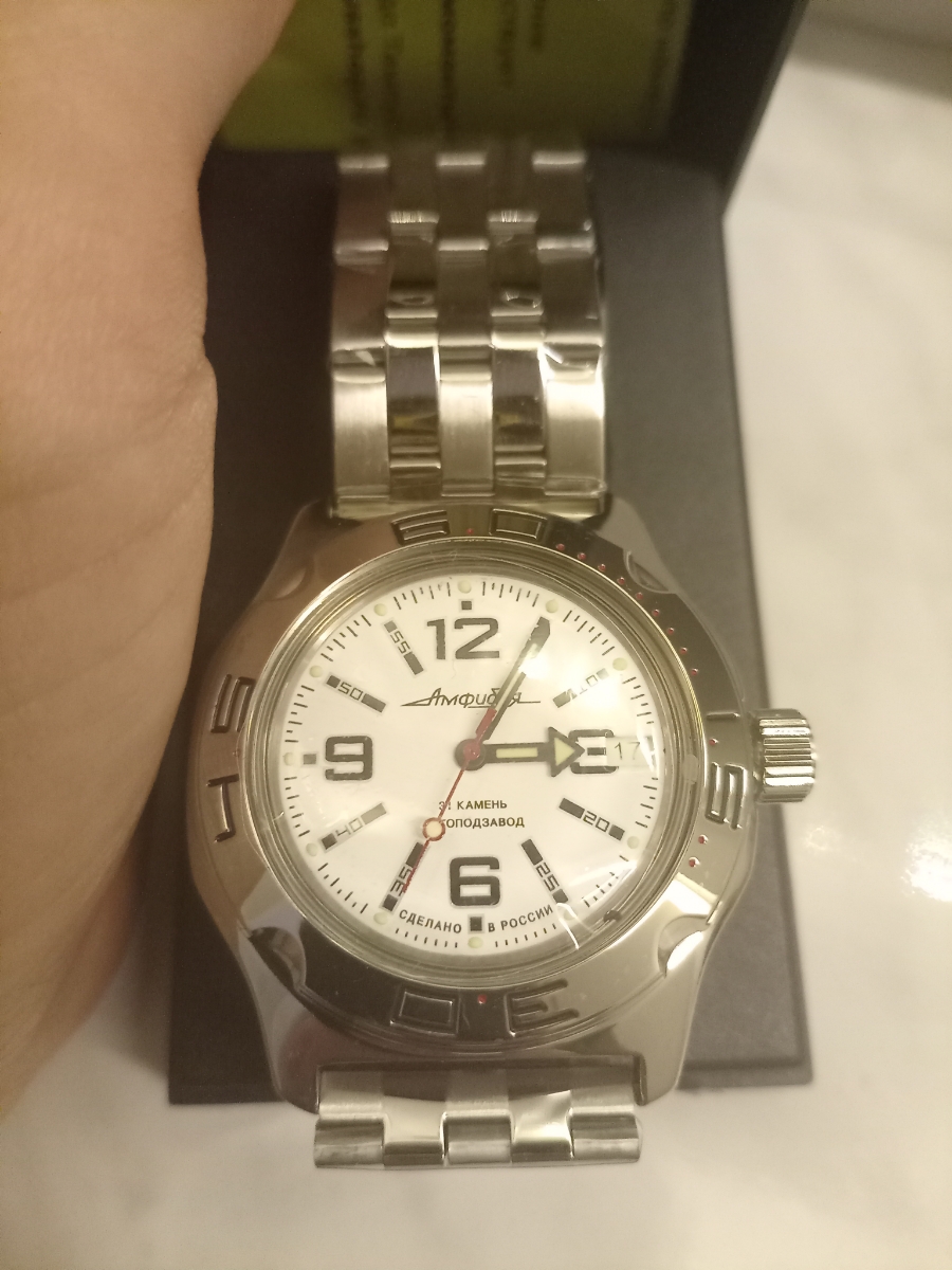 Выбирал очень долго. Сначала смотрел иностранные бренды типа Seiko, Casio и пр. в пределах до 30000₽, но всё одно и тоже, дизайны безликие, механизмы одинаковые что в часах за 10000, что за 30000. Короче дорого и ни о чём. Потом увидел в обзоре Амфибию. Это что-то невероятное. Дизайн притягивает взгляд, классический проверенный временем механизм. И да, если кто не знал - Амфибия является индустриальным мировым стандартом для часов такого класса! Супер! Смотрел в том числе и советские амфибии, благо есть коллекционеры. Но тогда в них не было автоподзавода… В итоге остановился на этой модели.