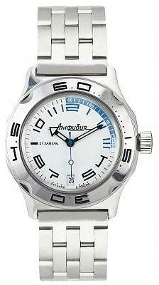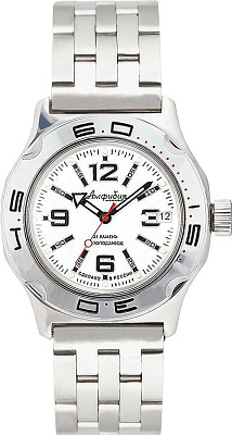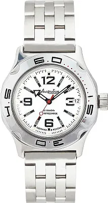 Мужские наручные часы Восток Амфибия 100485. Автоматические с ручным подзаводом. Пружина механизма заводится автоматически благодаря естественным движениям владельца в процессе ежедневной носки часов. Также есть возможность ручного завода. Корпус изготовлен из высококачественной нержавеющей стали 316L с высокими антикоррозийными свойствами. На стрелки и отметки нанесен светонакопительный состав, благодаря этому считывать информацию с циферблата возможно и в темноте. На циферблате отображается текущее число месяца. Браслет из нержавеющей стали. Органическое стекло. Часы являются водонепроницаемыми до 20 Бар. Цвет корпуса: Белый. Цвет циферблата: Белый. Ширина (с заводной головкой): 42мм. Толщина: 15мм. Гарантия: 1 год.