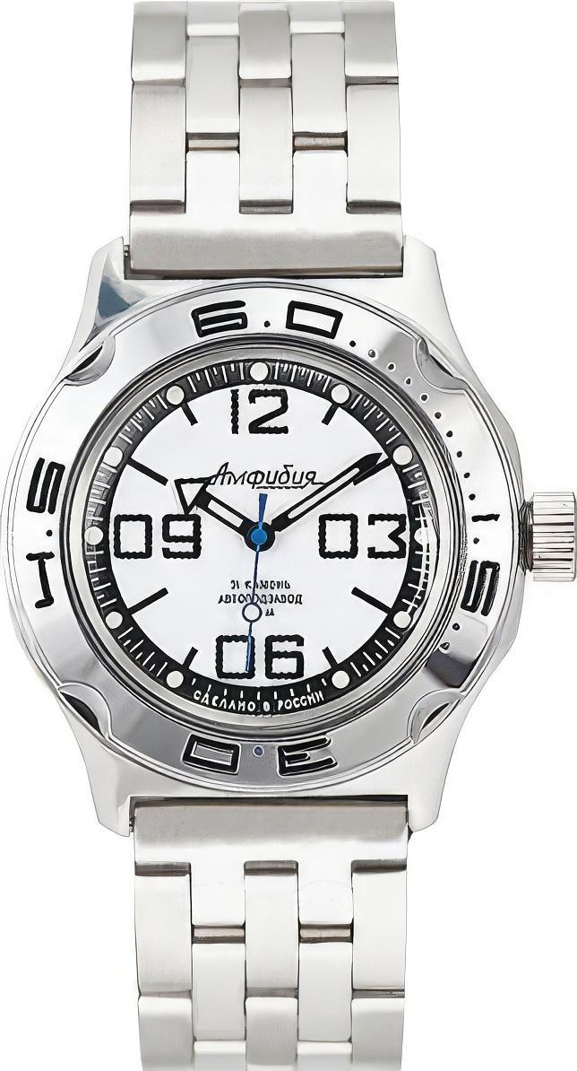 Мужские наручные часы Восток Амфибия 100816. Автоматические с ручным подзаводом. Пружина механизма заводится автоматически благодаря естественным движениям владельца в процессе ежедневной носки часов. Также есть возможность ручного завода. Корпус изготовлен из высококачественной нержавеющей стали 316L с высокими антикоррозийными свойствами. На стрелки и отметки нанесен светонакопительный состав, благодаря этому считывать информацию с циферблата возможно и в темноте. Браслет из нержавеющей стали. Органическое стекло. Часы являются водонепроницаемыми до 20 Бар. Цвет корпуса: Белый. Цвет циферблата: Белый. Ширина (с заводной головкой): 42мм. Толщина: 15мм. Гарантия: 1 год.
