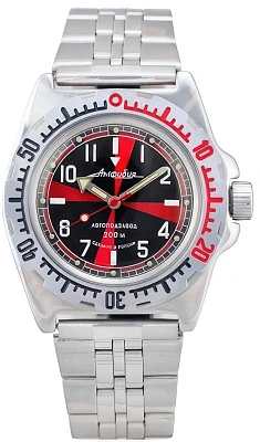 <b>Мужские наручные часы Восток Амфибия 110647.</b> Автоматические с ручным подзаводом. Пружина механизма заводится автоматически благодаря естественным движениям владельца в процессе ежедневной носки часов. Также есть возможность ручного завода. Корпус изготовлен из высококачественной нержавеющей стали 316L с высокими антикоррозийными свойствами. На стрелки и отметки нанесен светонакопительный состав, благодаря этому считывать информацию с циферблата возможно и в темноте. Браслет из нержавеющей стали. Органическое стекло. Часы являются водонепроницаемыми до 20 Бар. Цвет корпуса: Черный. Цвет циферблата: Черный. Ширина (с заводной головкой): 40мм. Толщина: 13мм. Гарантия: 1 год.