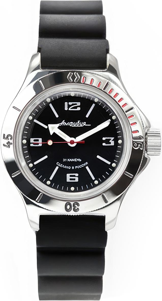 Мужские наручные часы Восток Амфибия 120509. Автоматические с ручным подзаводом. Пружина механизма заводится автоматически благодаря естественным движениям владельца в процессе ежедневной носки часов. Также есть возможность ручного завода. Корпус изготовлен из высококачественной нержавеющей стали 316L с высокими антикоррозийными свойствами. На стрелки и отметки нанесен светонакопительный состав, благодаря этому считывать информацию с циферблата возможно и в темноте. Браслет из нержавеющей стали. Органическое стекло. Часы являются водонепроницаемыми до 20 Бар. Цвет корпуса: Черный. Цвет циферблата: Черный. Ширина (с заводной головкой): 42мм. Толщина: 15мм. Гарантия: 1 год.