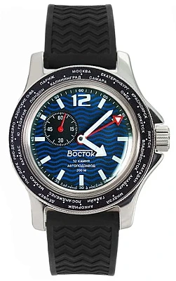 Мужские наручные часы Восток Амфибия 13003В. Механические с ручным подзаводом. Полимерный ремешок. Натуральный полимерный материал является идеальным для изготовления ремешка благодаря своей чрезвычайной прочности и гибкости. Отображение времени возможно в 12-часовом или 24-часовом формате. Браслет из нержавеющей стали. Органическое стекло. Часы являются водонепроницаемыми до 20 Бар. Цвет циферблата: Черный. Цвет корпуса: Синий. На стрелки и отметки нанесен светонакопительный состав, благодаря этому считывать информацию с циферблата возможно и в темноте. Высота (с ушками): 49 мм. Толщина: 15 мм. Гарантия: 1 год.