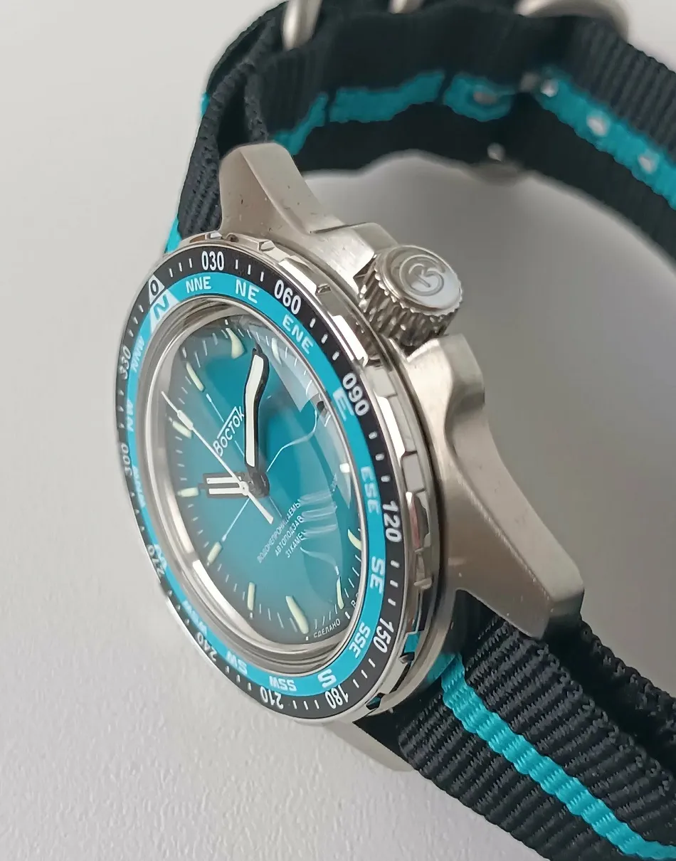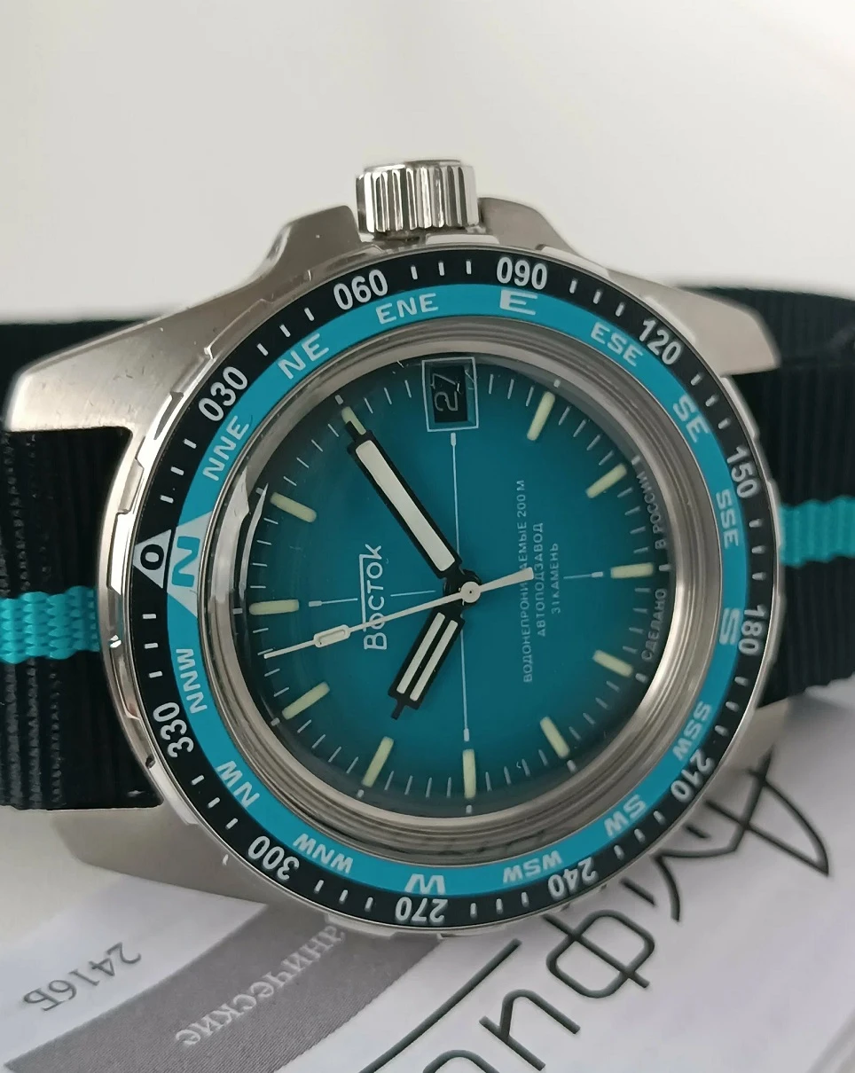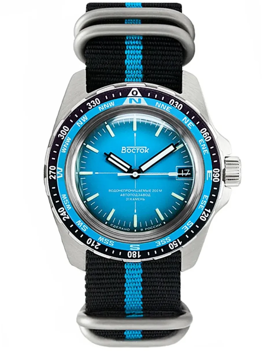 Мужские наручные часы Восток Амфибия 14054Б. Механические с ручным подзаводом. На стрелки и отметки нанесен светонакопительный состав, благодаря этому считывать информацию с циферблата возможно и в темноте. Текстильный ремешок. В отличие от кожаных ремешков, текстильный более устойчив к воздействию влаги и пота, не теряя своих свойств. Ударопрочная конструкция часов защищает от ударов и вибрации. Корпус изготовлен из высококачественной нержавеющей стали 316L с высокими антикоррозийными свойствами. Органическое стекло. Часы являются водонепроницаемыми до 20 Бар. Цвет корпуса: Серебристый. Цвет циферблата: Голубой. Толщина: 15 мм. Гарантия: 1 год.