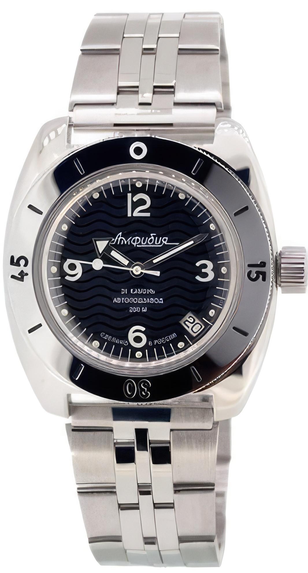 Мужские наручные часы Восток Амфибия 150344. Механические с автоподзаводом. Пружина механизма заводится автоматически благодаря естественным движениям владельца в процессе ежедневной носки часов. Корпус изготовлен из высококачественной нержавеющей стали 316L с высокими антикоррозийными свойствами. На стрелки и отметки нанесен светонакопительный состав, благодаря этому считывать информацию с циферблата возможно и в темноте. На циферблате отображается текущее число месяца. Браслет из нержавеющей стали. Органическое стекло. Часы являются водонепроницаемыми до 20 Бар. Цвет корпуса: Черный. Цвет циферблата: Черный. Ширина (с заводной головкой): 42мм. Толщина: 15мм. Гарантия: 1 год.