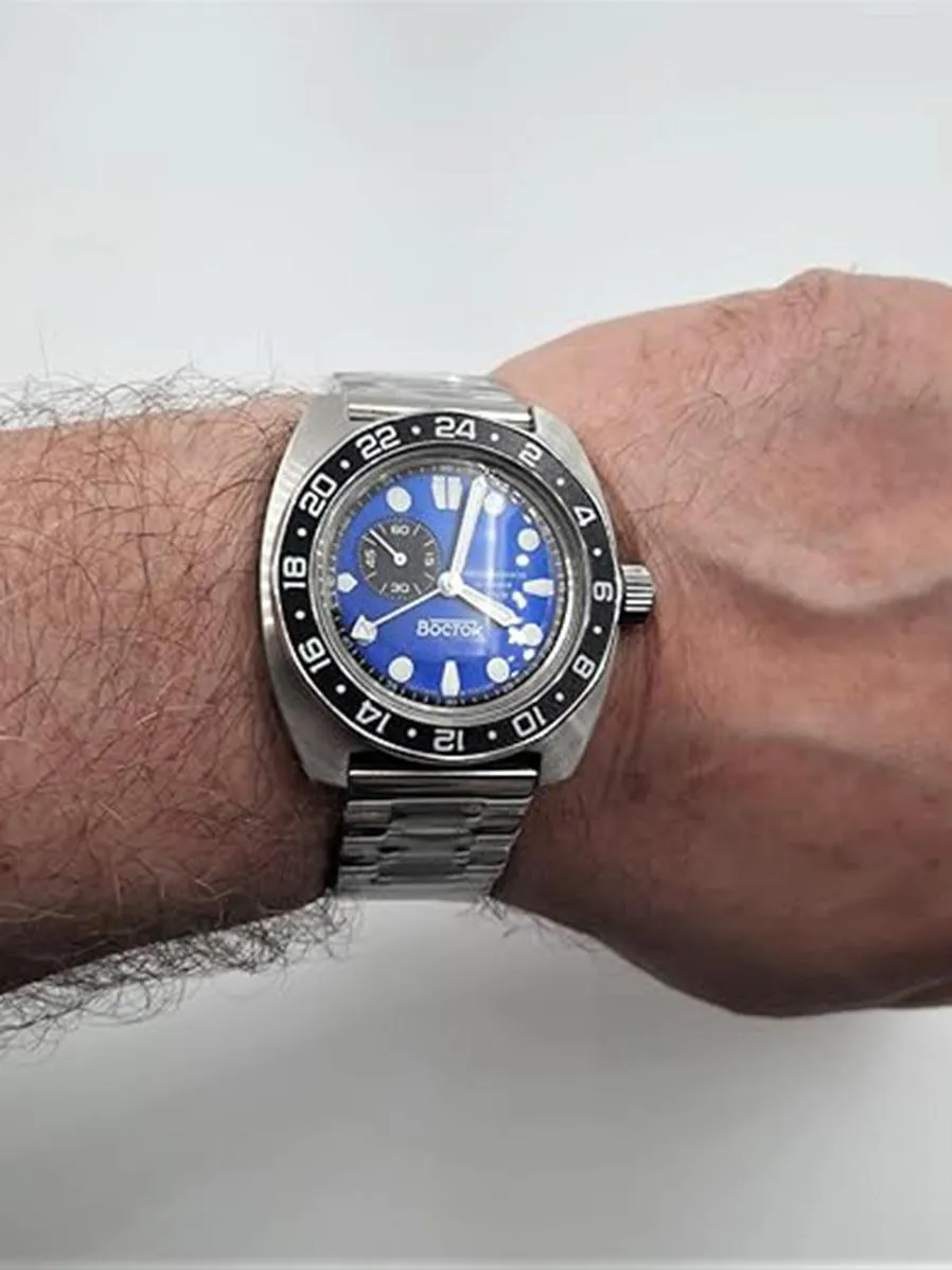 Мужские наручные часы Восток Амфибия 17035Б. Механические с ручным подзаводом. Корпус изготовлен из высококачественной нержавеющей стали 316L с высокими антикоррозийными свойствами. На стрелки и отметки нанесен светонакопительный состав, благодаря этому считывать информацию с циферблата возможно и в темноте. Ударопрочность. Батарейка на 10 летБраслет из нержавеющей стали. Органическое стекло. Часы являются водонепроницаемыми до 20 Бар. Цвет корпуса: Черный. Цвет циферблата: Синий. Ширина (с заводной головкой): 42мм. Толщина: 15мм. Гарантия: 1 год.