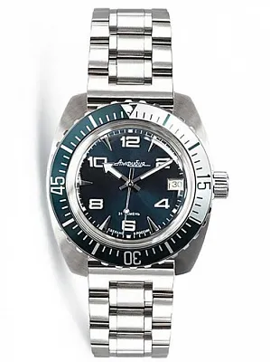 Мужские наручные часы Восток Амфибия 170375. Механические с ручным подзаводом. Полимерный ремешок. Натуральный полимерный материал является идеальным для изготовления ремешка благодаря своей чрезвычайной прочности и гибкости. Браслет из нержавеющей стали. Органическое стекло. На циферблате отображается текущее число месяца. Часы являются водонепроницаемыми до 20 Бар. Цвет циферблата: Серебристый. Цвет циферблата: Черный. Цвет корпуса: Черный. На стрелки и отметки нанесен светонакопительный состав, благодаря этому считывать информацию с циферблата возможно и в темноте. Толщина: 15 мм. Гарантия: 1 год.