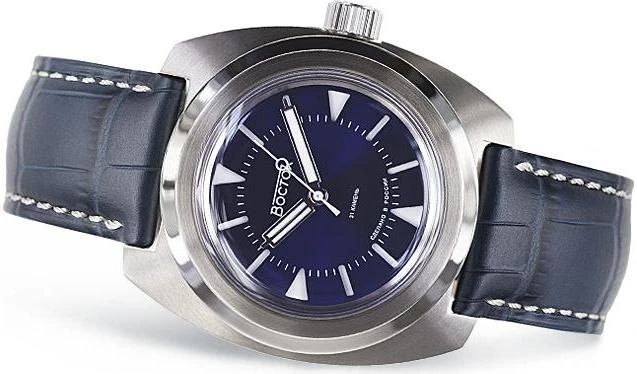 Мужские наручные часы Восток Амфибия 170549. Механические с ручным подзаводом. Корпус изготовлен из высококачественной нержавеющей стали 316L с высокими антикоррозийными свойствами. На стрелки и отметки нанесен светонакопительный состав, благодаря этому считывать информацию с циферблата возможно и в темноте. Ремешок изготовлен из кожи. Органическое стекло. Часы являются водонепроницаемыми до 20 Бар. Цвет корпуса: Серебристый. Цвет циферблата: Синий. Гарантия: 1 год.