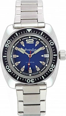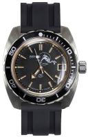 Мужские наручные часы Восток Амфибия 170805. Механические с ручным подзаводом. Корпус изготовлен из высококачественной нержавеющей стали 316L с высокими антикоррозийными свойствами. На стрелки и отметки нанесен светонакопительный состав, благодаря этому считывать информацию с циферблата возможно и в темноте. На циферблате отображается текущее число месяца. Ударопрочная конструкция часов защищает от ударов и вибрации. Полимерный ремешок. Натуральный полимерный материал является идеальным для изготовления ремешка благодаря своей чрезвычайной прочности и гибкости. Органическое стекло. Часы являются водонепроницаемыми до 20 Бар. Цвет корпуса: Черный. Цвет циферблата: Черный. Гарантия: 1 год.