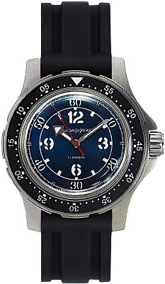 Мужские наручные часы Восток Амфибия 18086А. Механические с ручным подзаводом. Полимерный ремешок. Натуральный полимерный материал является идеальным для изготовления ремешка благодаря своей чрезвычайной прочности и гибкости. Браслет из нержавеющей стали. Органическое стекло. Часы являются водонепроницаемыми до 20 Бар. Цвет циферблата: Серебристый. Цвет циферблата: Черный. Цвет корпуса: Синий. На стрелки и отметки нанесен светонакопительный состав, благодаря этому считывать информацию с циферблата возможно и в темноте. Толщина: 12 мм. Гарантия: 1 год.
