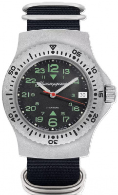 Мужские наручные часы Восток Амфибия 280992. Механические с ручным подзаводом. Корпус изготовлен из высококачественной нержавеющей стали 316L с высокими антикоррозийными свойствами. На стрелки и отметки нанесен светонакопительный состав, благодаря этому считывать информацию с циферблата возможно и в темноте. На циферблате отображается текущее число месяца. Текстильный ремешок. Органическое стекло. Часы являются водонепроницаемыми до 20 Бар. Цвет корпуса: Серый. Цвет циферблата: Зеленый. Гарантия: 1 год.