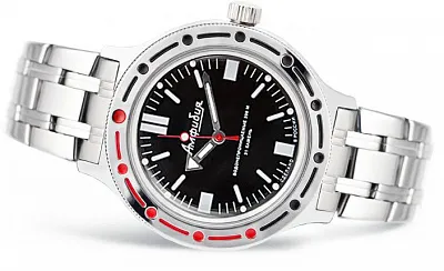Мужские наручные часы Восток Амфибия 420916. Автоматические с ручным подзаводом. Пружина механизма заводится автоматически благодаря естественным движениям владельца в процессе ежедневной носки часов. Также есть возможность ручного завода. Браслет из нержавеющей стали. Браслет из нержавеющей стали. Органическое стекло. Часы являются водонепроницаемыми до 20 Бар. Цвет циферблата: Серебристый. Цвет корпуса: Черный. На стрелки и отметки нанесен светонакопительный состав, благодаря этому считывать информацию с циферблата возможно и в темноте. Толщина: 15 мм. Гарантия: 1 год.