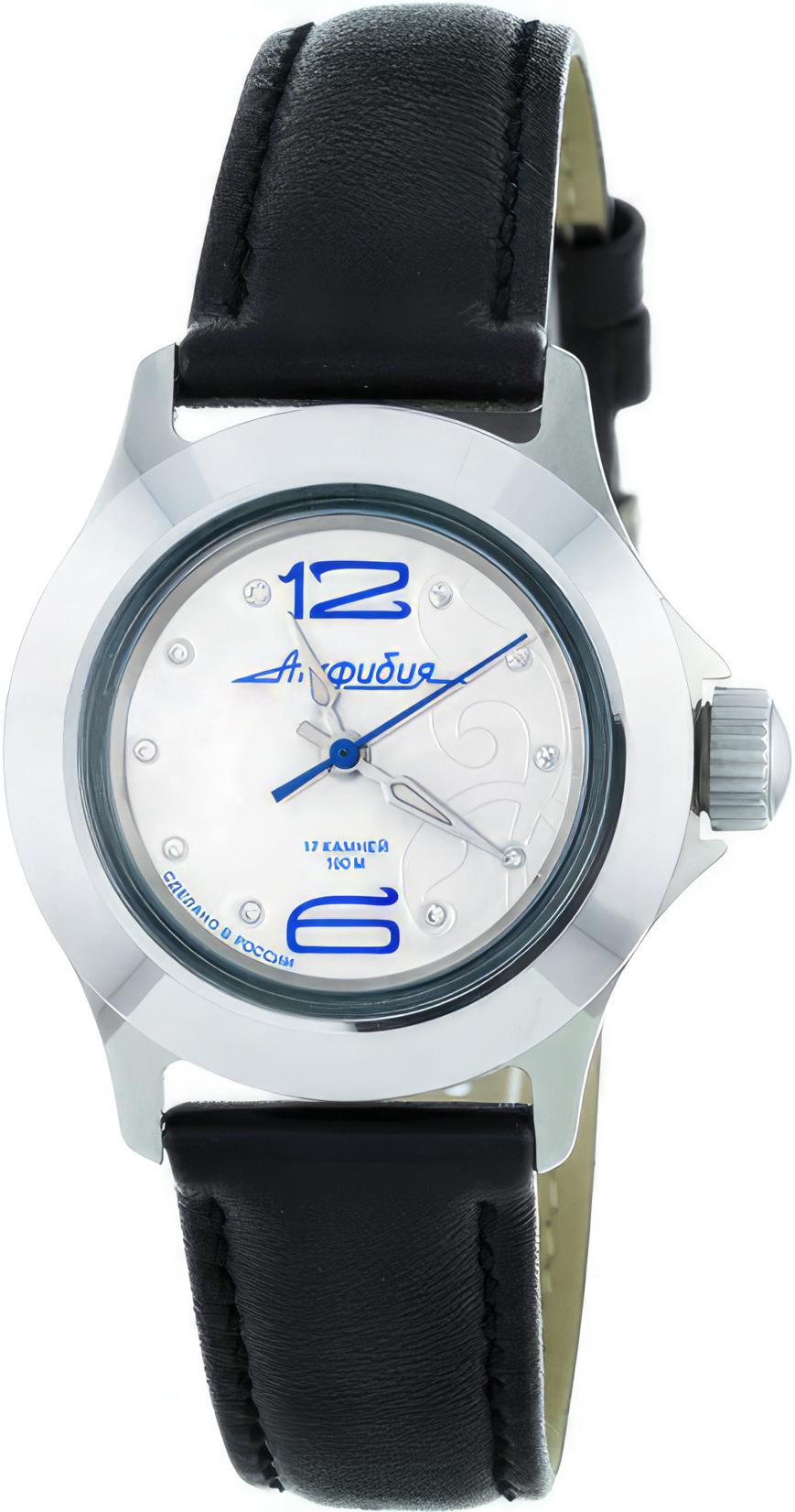 Женские наручные часы Восток Амфибия 051266. Механические с ручным подзаводом. Корпус изготовлен из высококачественной часовой латуни с высокими антикоррозийными свойствами. На стрелки и отметки нанесен светонакопительный состав, благодаря этому считывать информацию с циферблата возможно и в темноте. Ремешок изготовлен из кожи. Органическое стекло. Часы являются водонепроницаемыми до 10 Бар. Цвет корпуса: Белый. Цвет циферблата: Белый. Ширина (с заводной головкой): 33мм. Толщина: 11мм. Гарантия: 1 год.