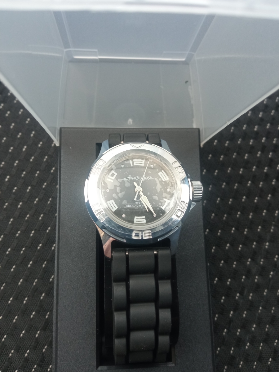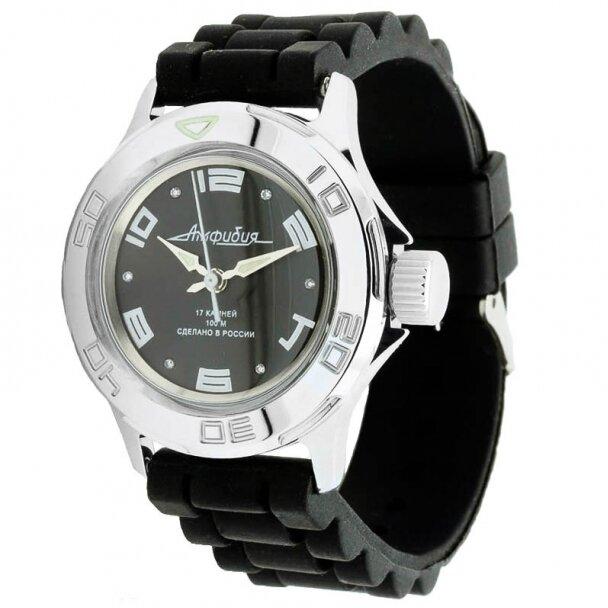 Женские наручные часы Восток Амфибия 051461. Механические с ручным подзаводом. Корпус изготовлен из высококачественной часовой латуни с высокими антикоррозийными свойствами. На стрелки и отметки нанесен светонакопительный состав, благодаря этому считывать информацию с циферблата возможно и в темноте. Полимерный ремешок. Натуральный полимерный материал является идеальным для изготовления ремешка благодаря своей чрезвычайной прочности и гибкости. Органическое стекло. Часы являются водонепроницаемыми до 10 Бар. Цвет циферблата: Черный. Ширина (с заводной головкой): 33мм. Толщина: 11мм. Гарантия: 1 год.