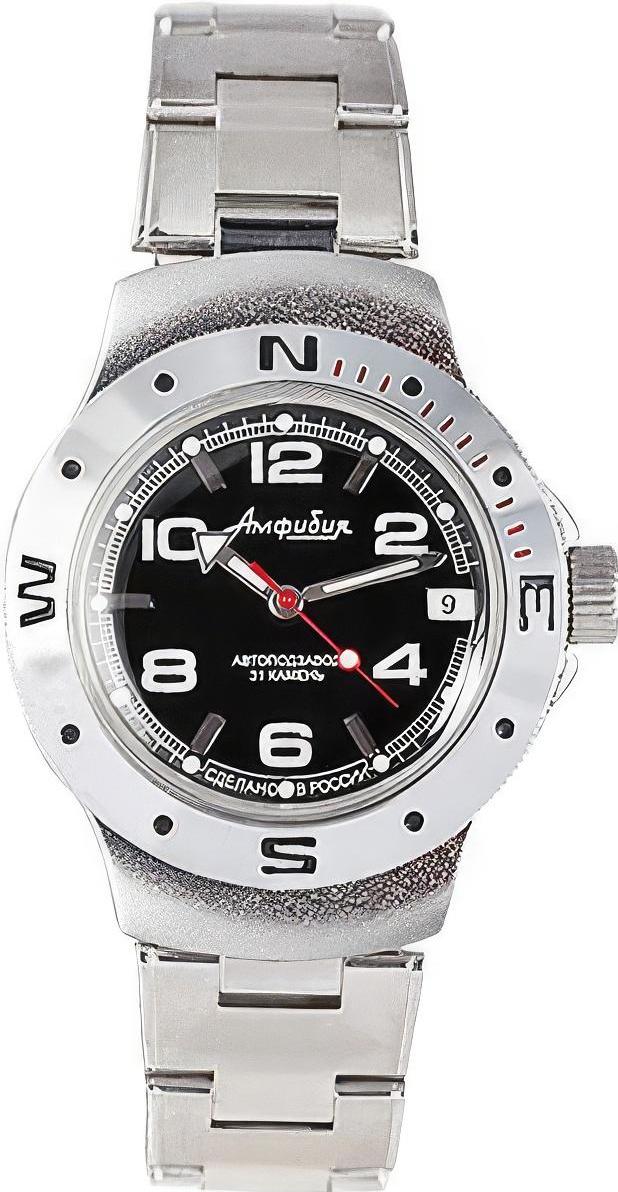 Мужские наручные часы Восток Амфибия 060433. Механические с автоподзаводом. Пружина механизма заводится автоматически благодаря естественным движениям владельца в процессе ежедневной носки часов. Корпус изготовлен из высококачественной нержавеющей стали 316L с высокими антикоррозийными свойствами. На стрелки и отметки нанесен светонакопительный состав, благодаря этому считывать информацию с циферблата возможно и в темноте. На циферблате отображается текущее число месяца. Браслет из нержавеющей стали. Органическое стекло. Часы являются водонепроницаемыми до 20 Бар. Цвет корпуса: Двухцветный. Цвет циферблата: Черный. Ширина (с заводной головкой): 42мм. Толщина: 13мм. Гарантия: 1 год.
