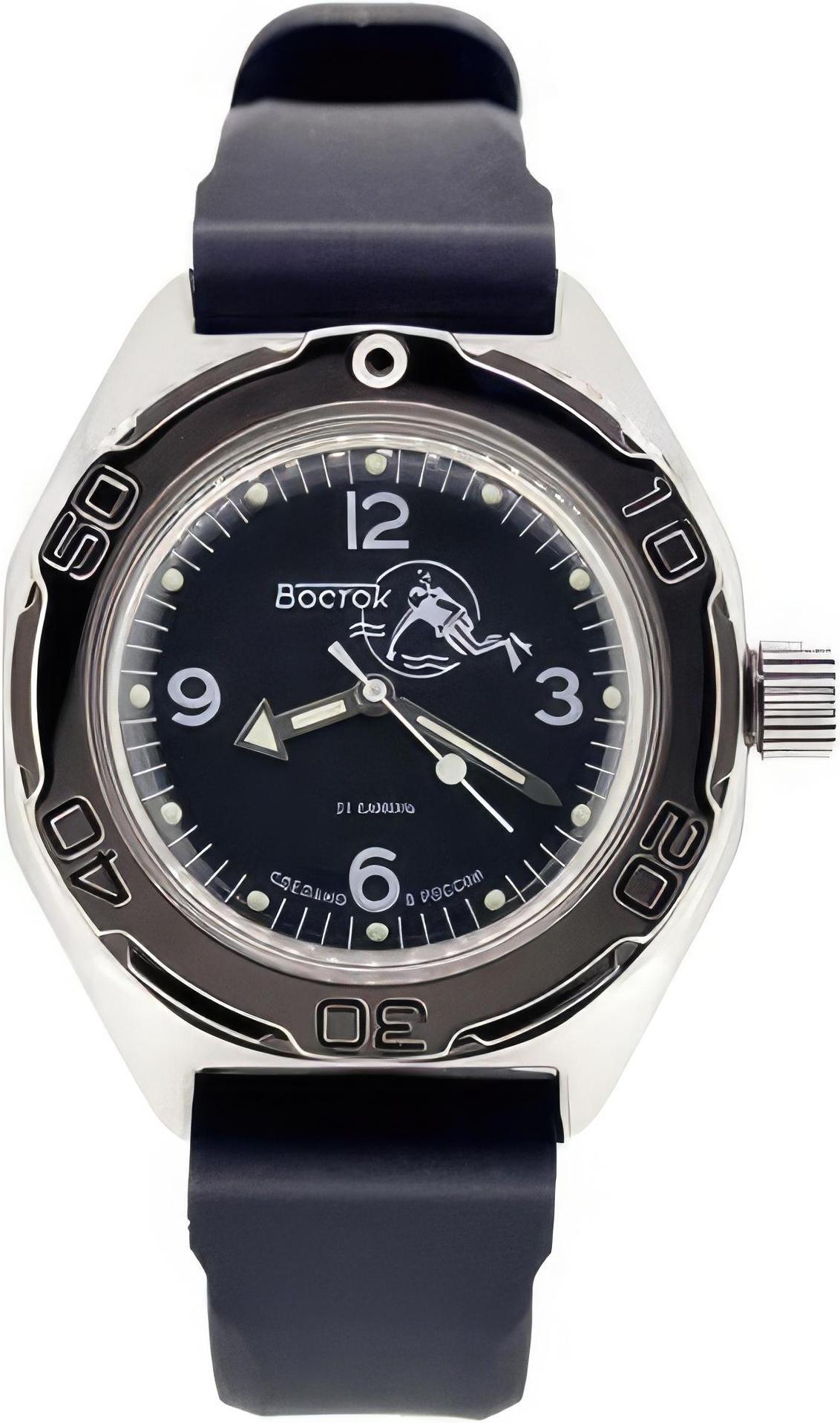 Мужские наручные часы Восток Амфибия 670919. Механические с автоподзаводом. Пружина механизма заводится автоматически благодаря естественным движениям владельца в процессе ежедневной носки часов. Корпус изготовлен из высококачественной нержавеющей стали 316L с высокими антикоррозийными свойствами. На стрелки и отметки нанесен светонакопительный состав, благодаря этому считывать информацию с циферблата возможно и в темноте. Полимерный ремешок. Натуральный полимерный материал является идеальным для изготовления ремешка благодаря своей чрезвычайной прочности и гибкости. Органическое стекло. Часы являются водонепроницаемыми до 20 Бар. Цвет корпуса: Черный. Цвет циферблата: Черный. Ширина (с заводной головкой): 42мм. Толщина: 15мм. Гарантия: 1 год.